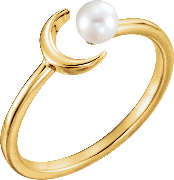 14K Yellow Cultured Freshwater Pearl Crescent Moon Ring