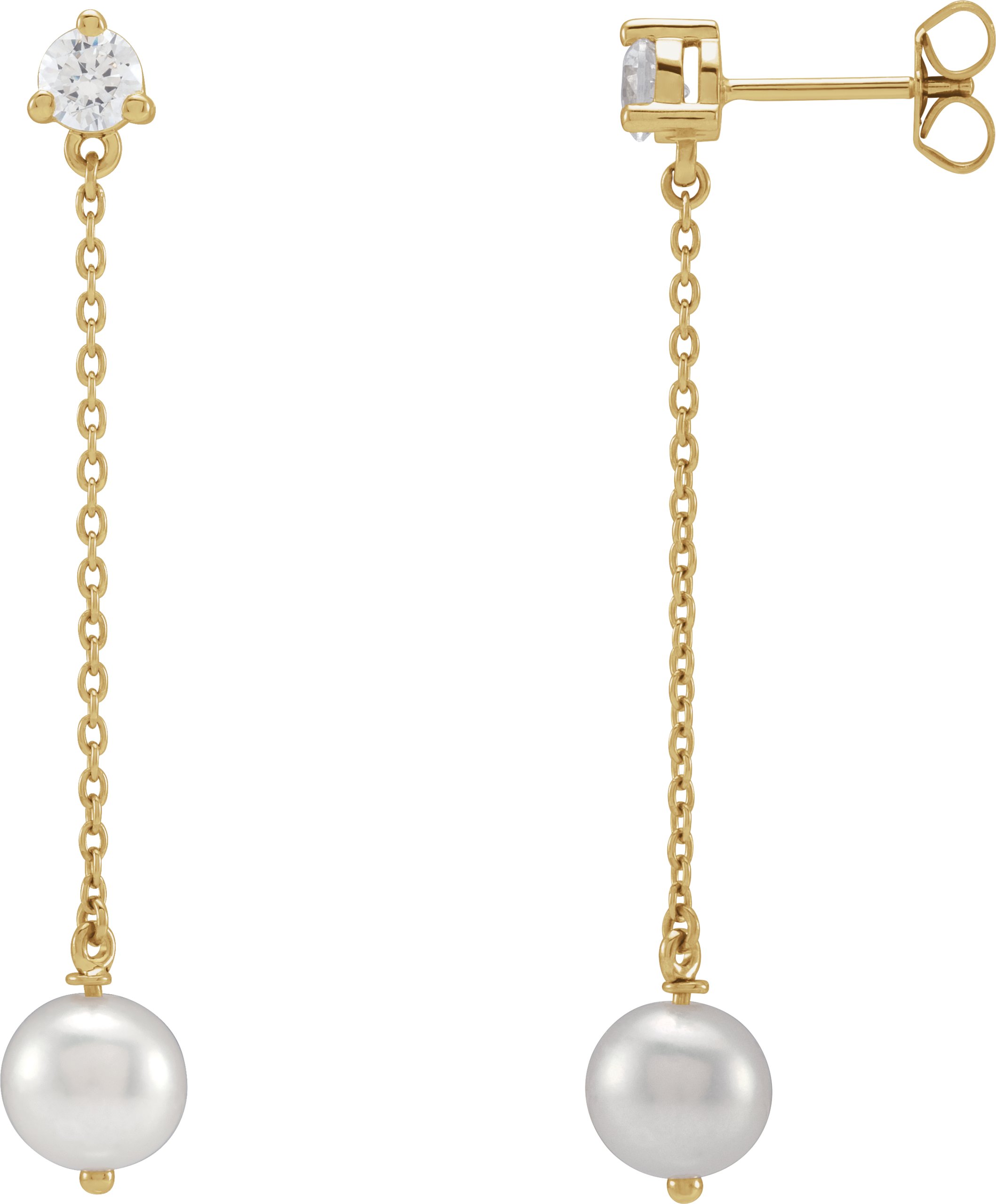 Description: Freshwater Pearl And Lab-Grown Diamond Earrings