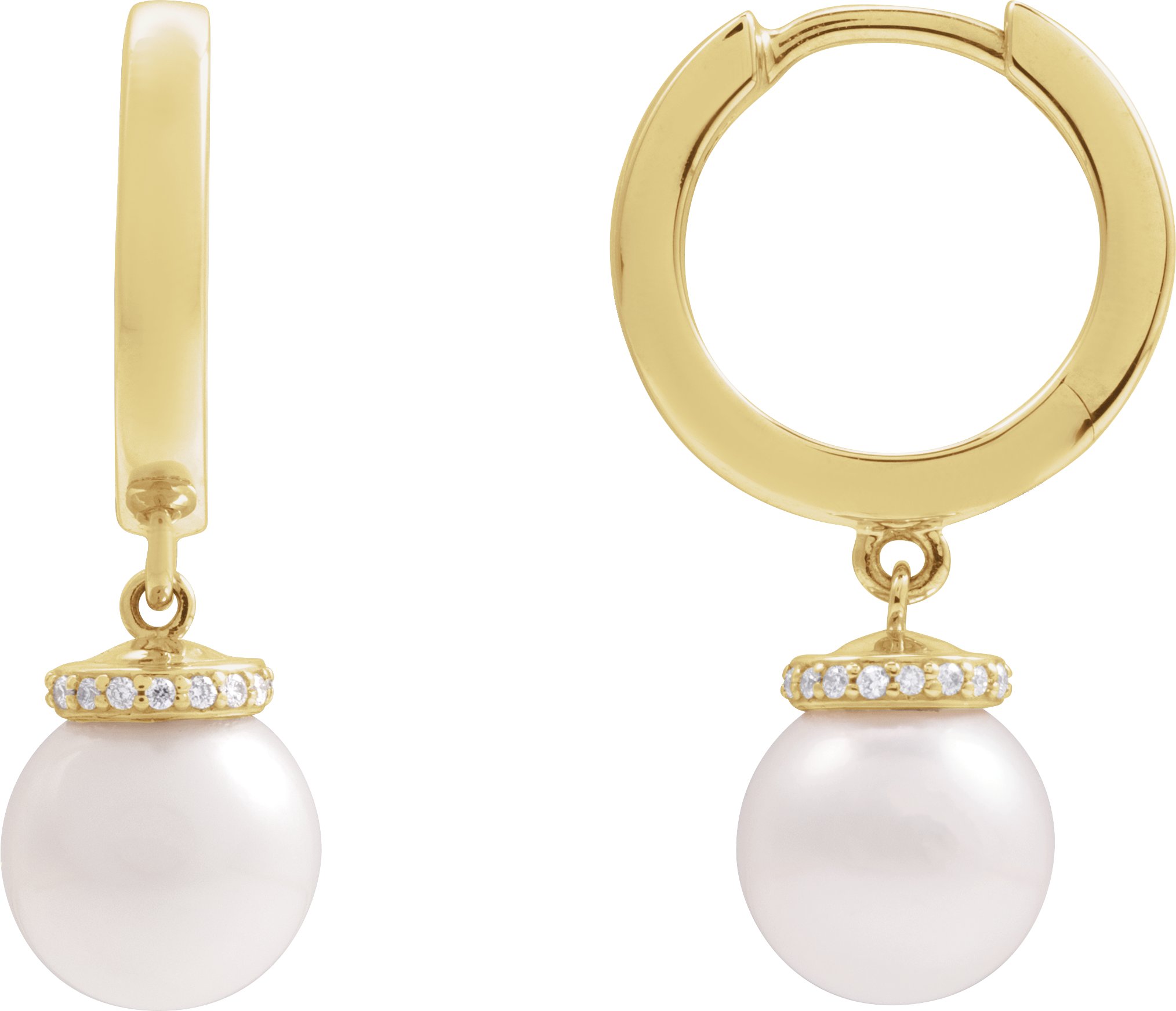 14K Yellow Cultured White Akoya Pearl & .07 CTW Natural Diamond Hinged 14.2 mm Hoop Earrings