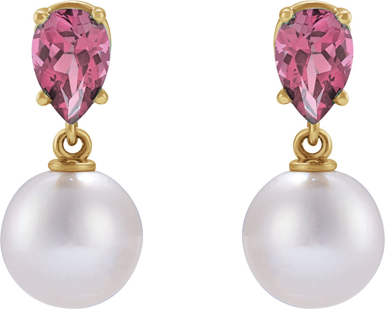 14K Yellow Cultured White Akoya Pearl & Natural Pink Tourmaline Earrings