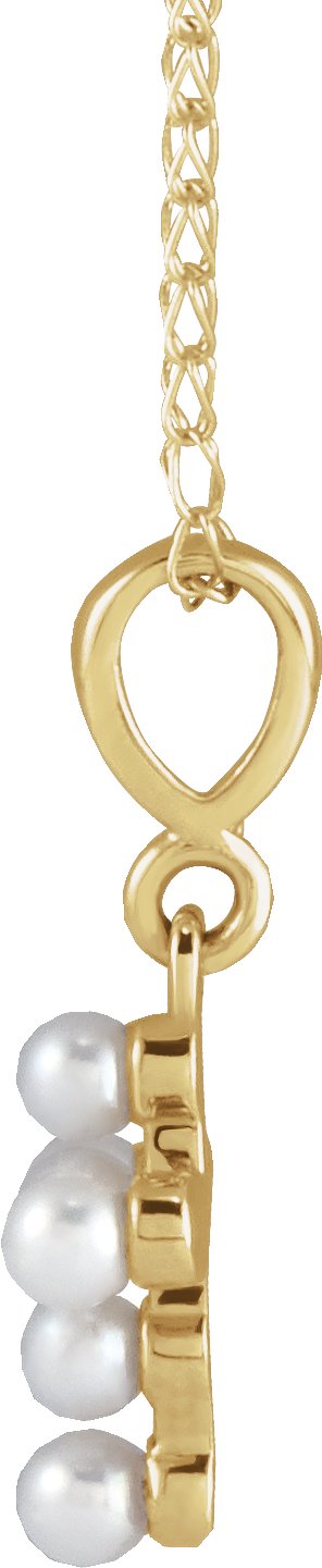 14K Yellow Cultured White Seed Pearl Youth Cross 16" Necklace