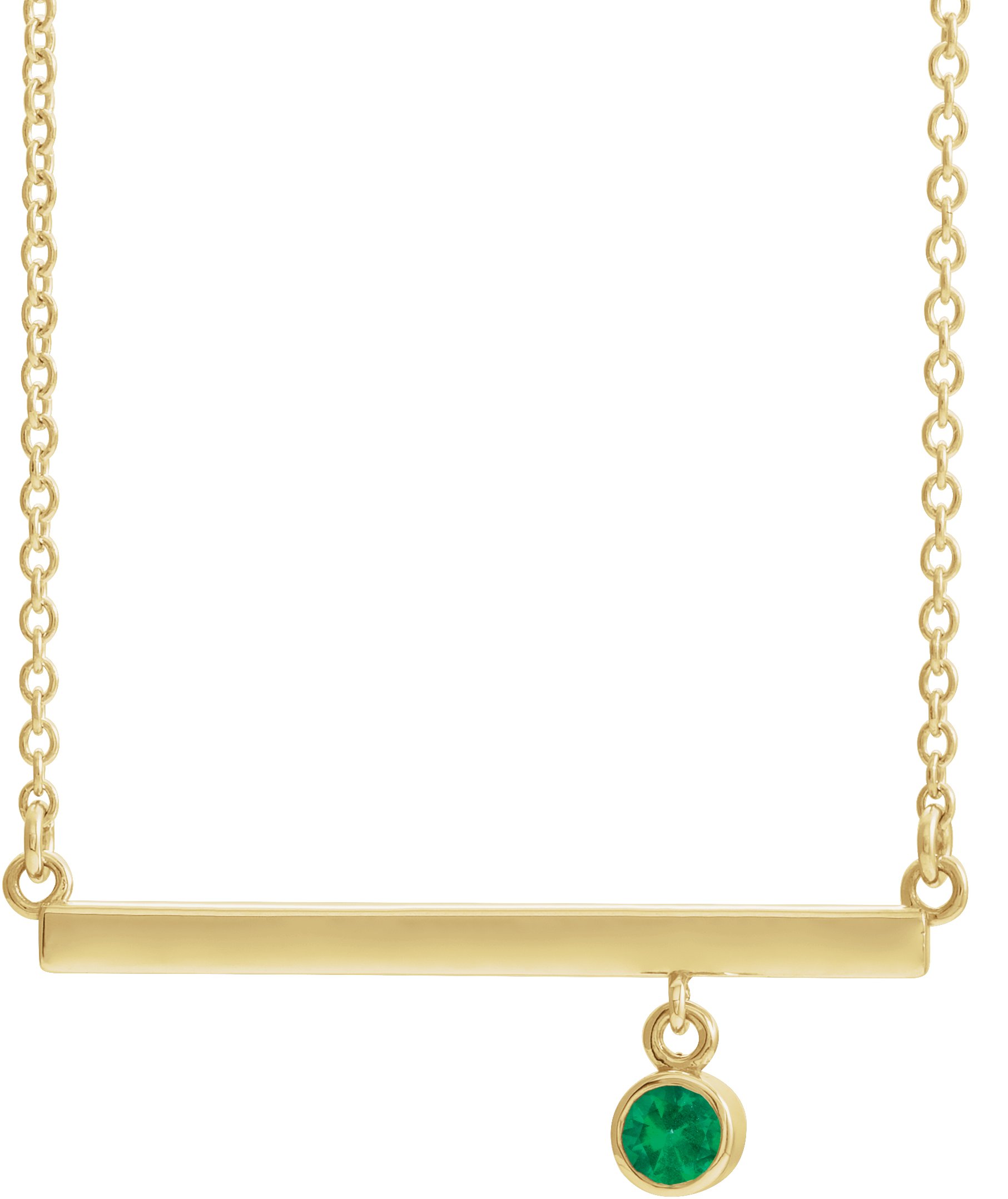 14K Yellow Emerald Bezel Set 18 inch Bar Necklace