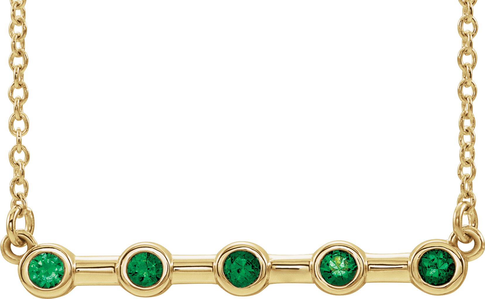 14K Yellow Emerald Bezel Set Bar 16 inch Necklace
