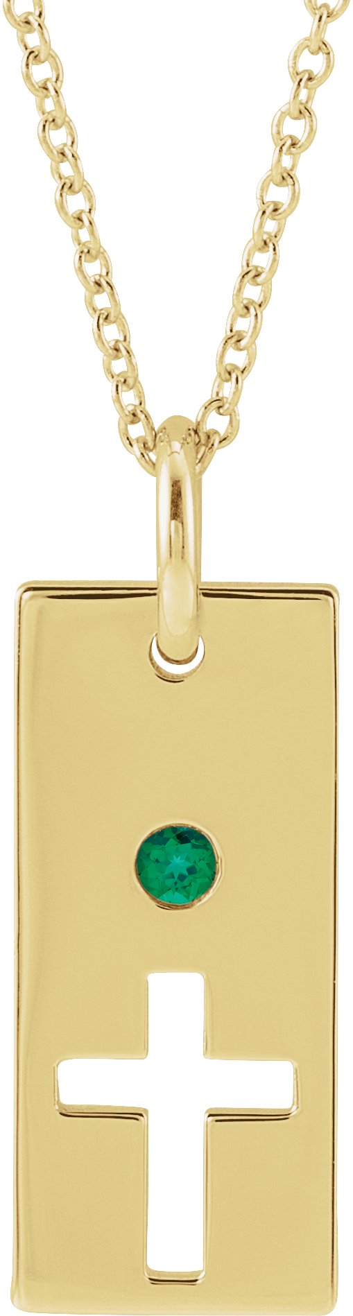Description: Emerald Vertical Bar Cross Necklace