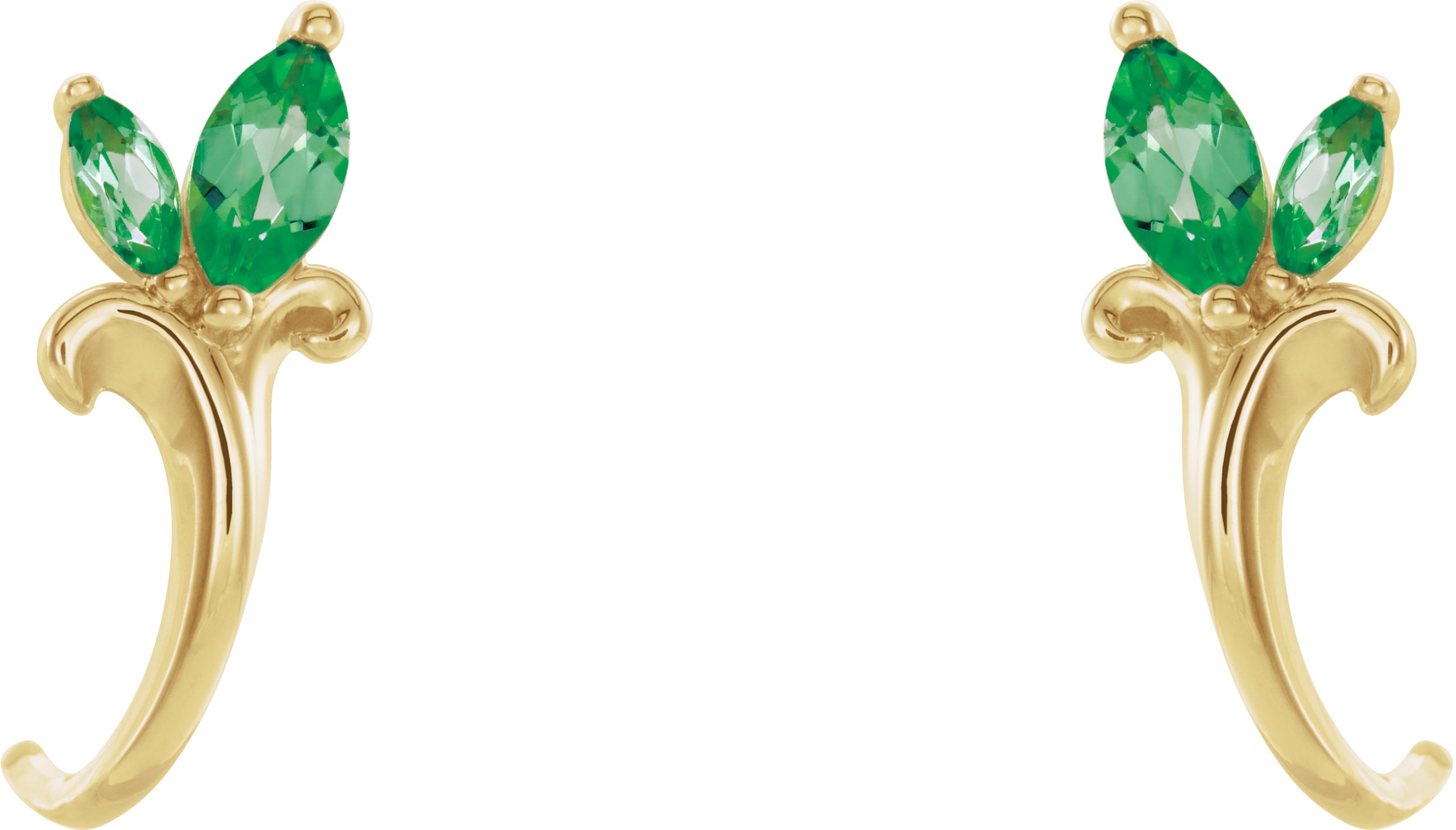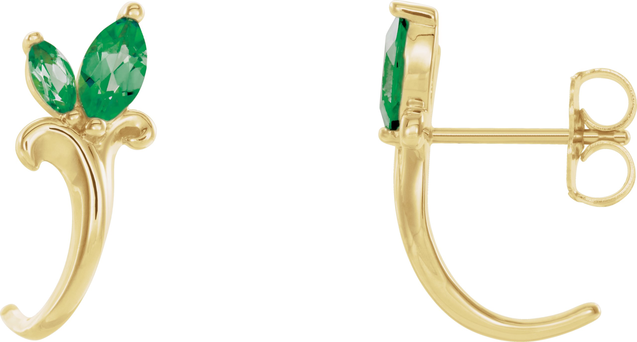 Description: Genuine Emerald Floral-Inspired J-Hoop Earrings