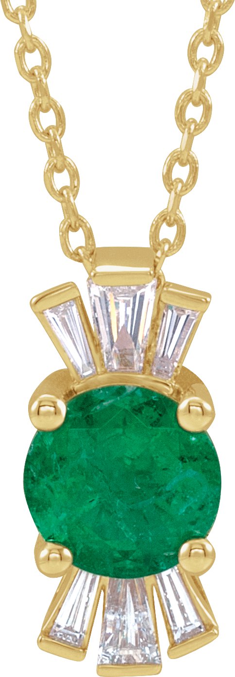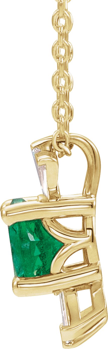 14K Yellow Emerald & 1/6 CTW Diamond 16 18 inch Necklace