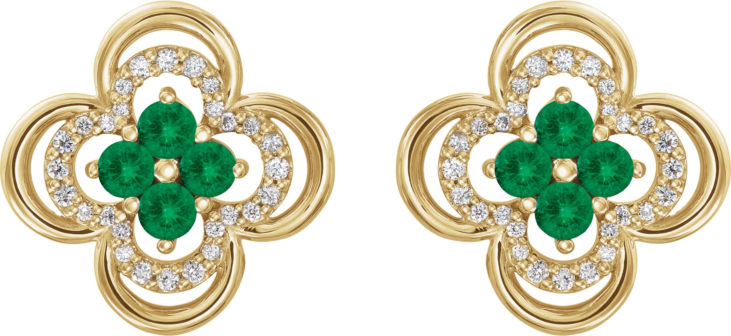 14K Yellow Emerald & 1/5 CTW Diamond Clover Earrings