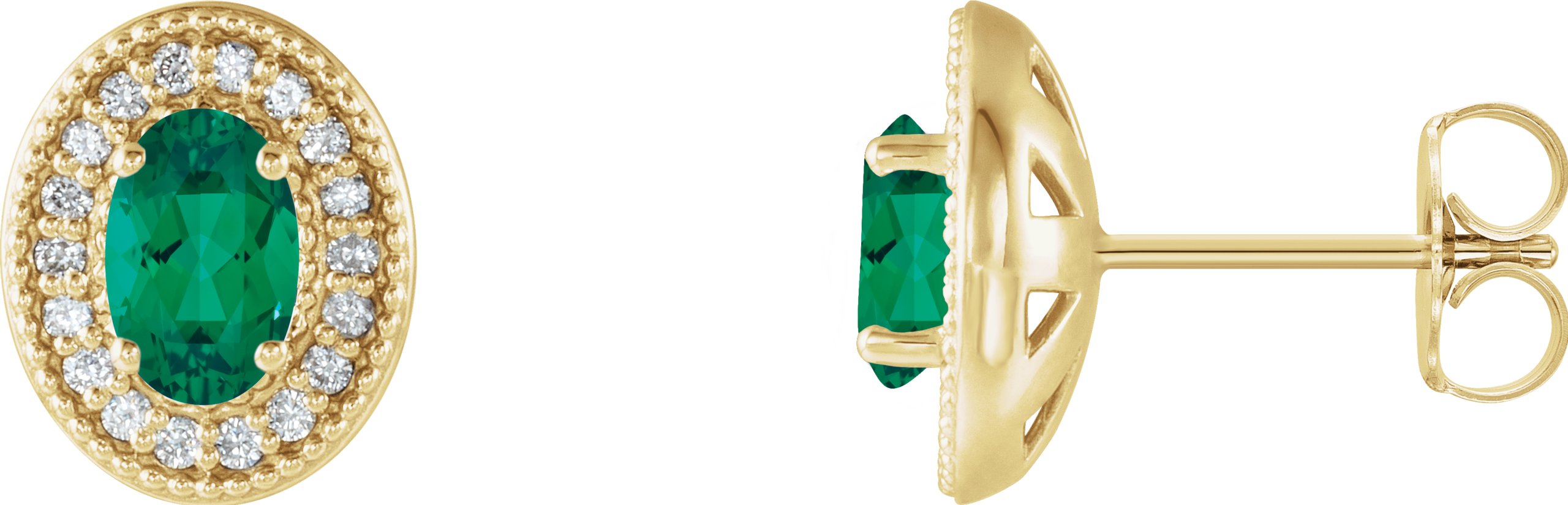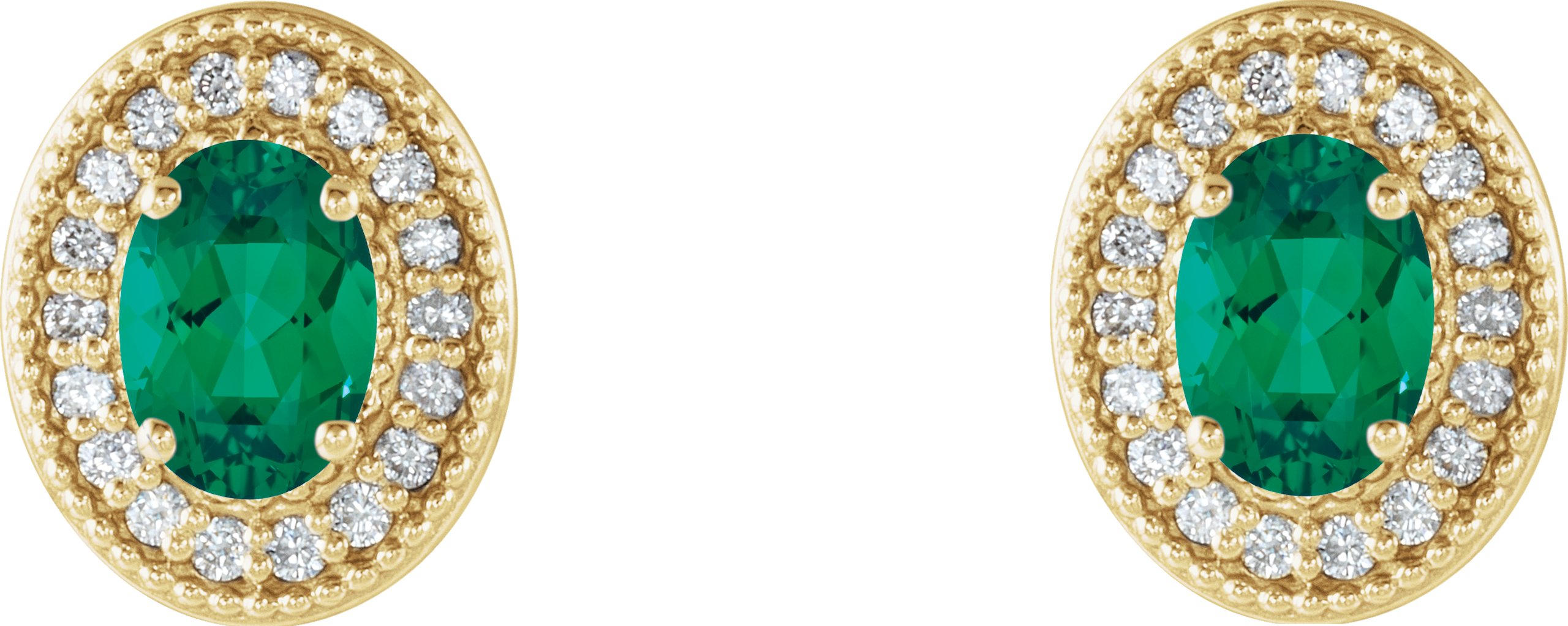 14K Yellow Emerald & 1/5 CTW Diamond Halo Style Earrings