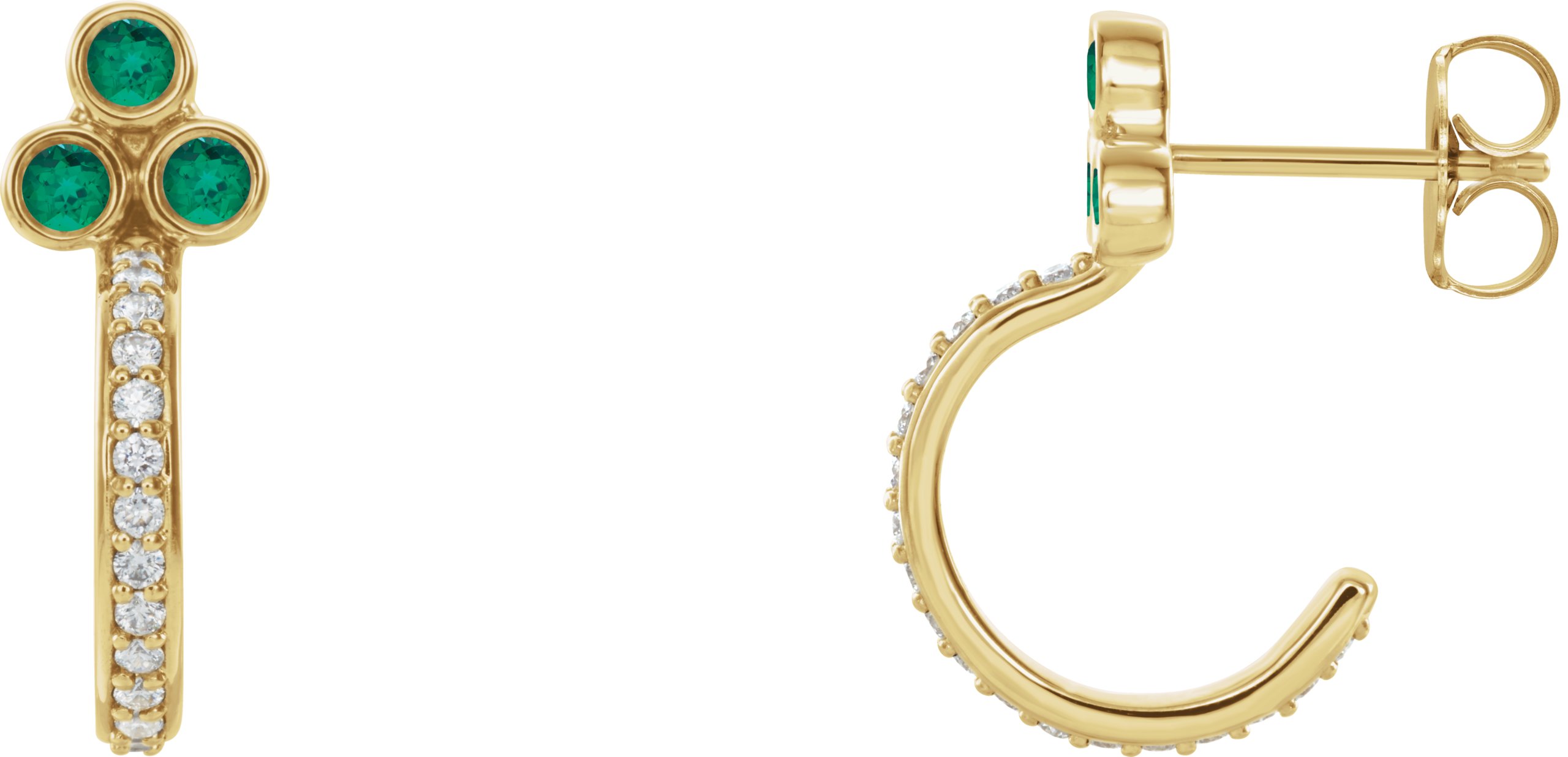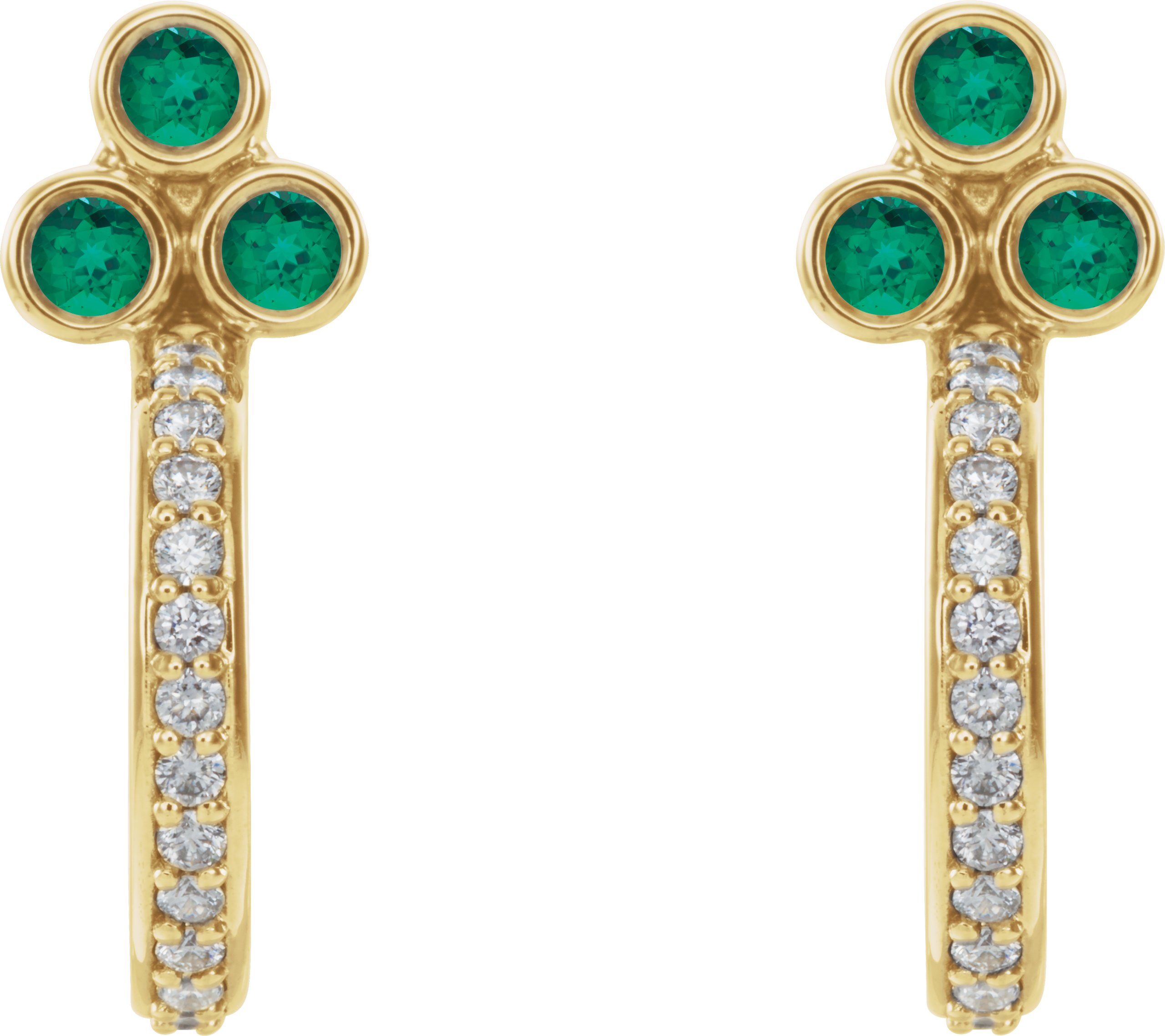 14K Yellow Emerald & 1/4 CTW Diamond J Hoop Earrings