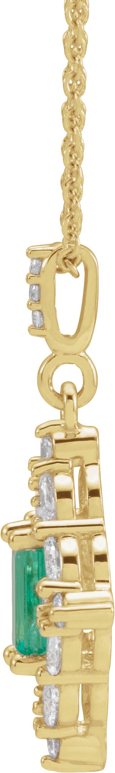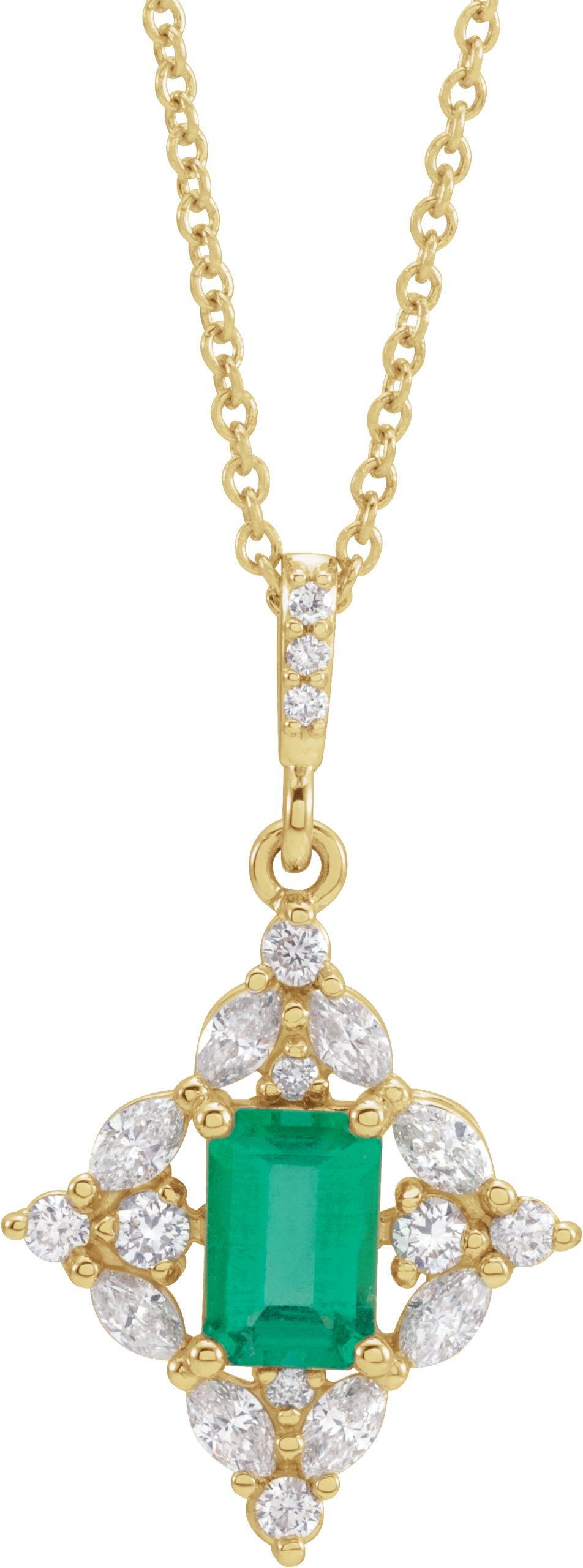 14K Yellow Emerald & 3/8 CTW Diamond 16 18 inch Necklace