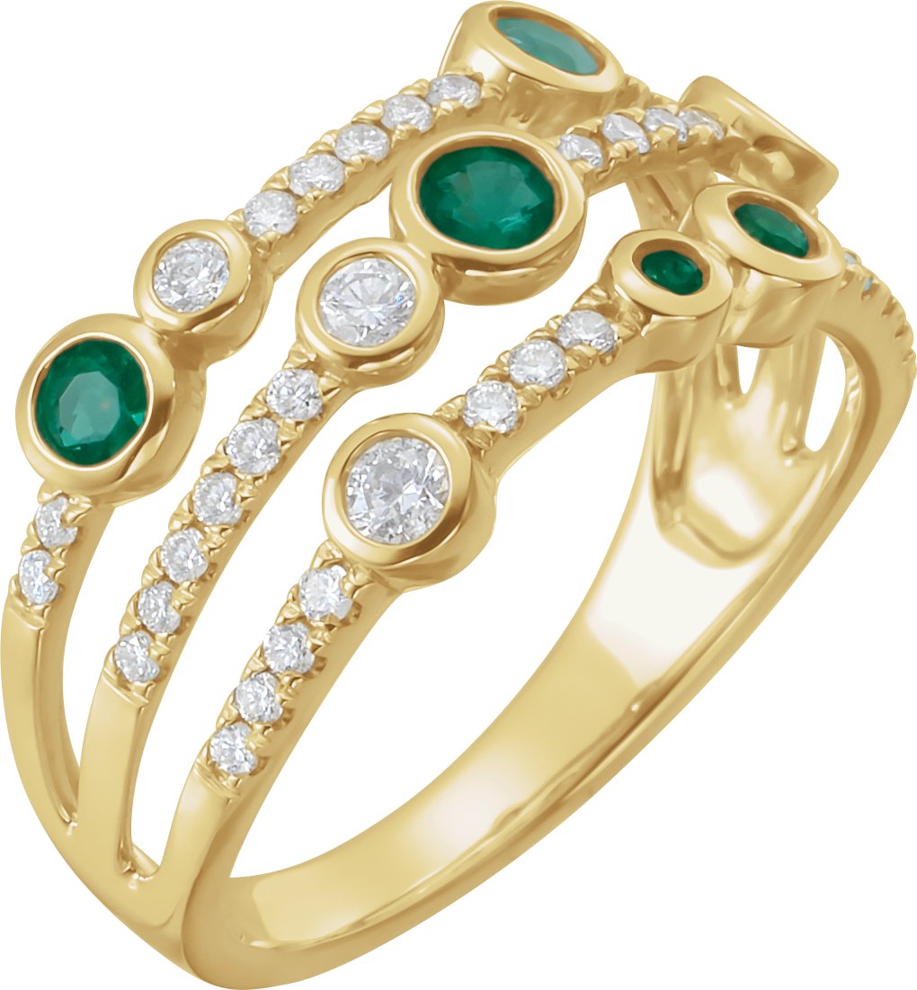 14K Yellow Emerald & 3/8 CTW Diamond Ring