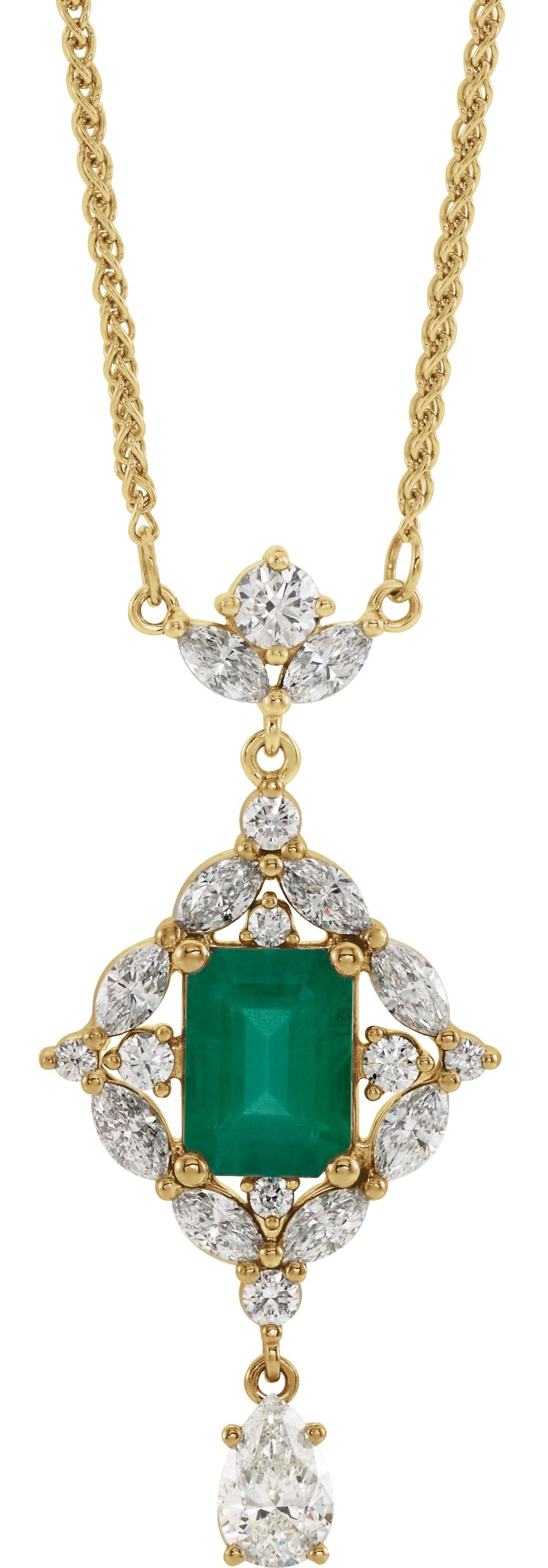 14K Yellow Emerald & 1 1/4 CTW Diamond 16" Necklace Ref. 15039108