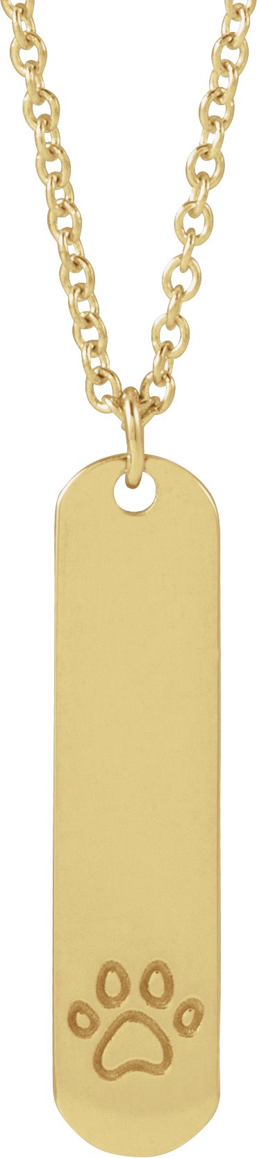 14K Yellow Engravable Paw Print 16-18" Necklace