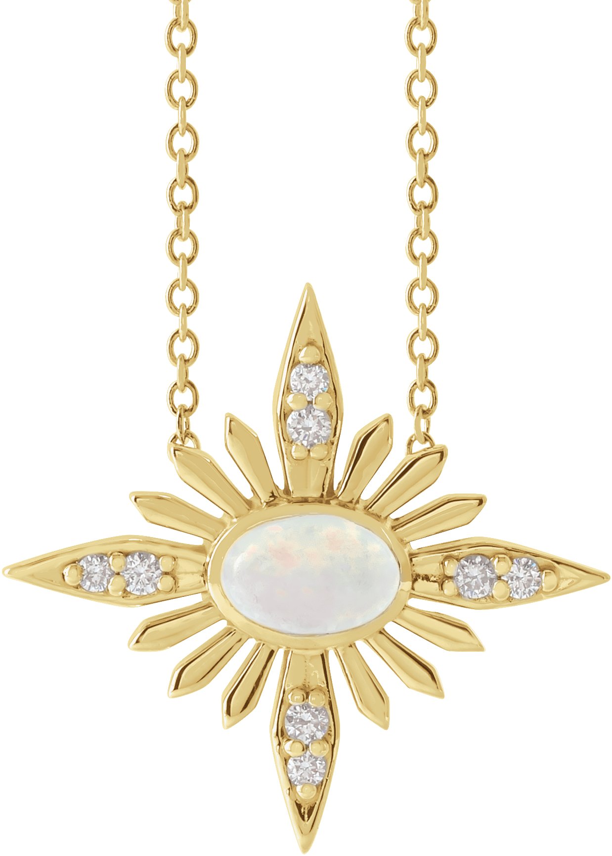 14K Yellow Ethiopian Opal & .08 CTW Diamond Celestial 16 18 inch Necklace