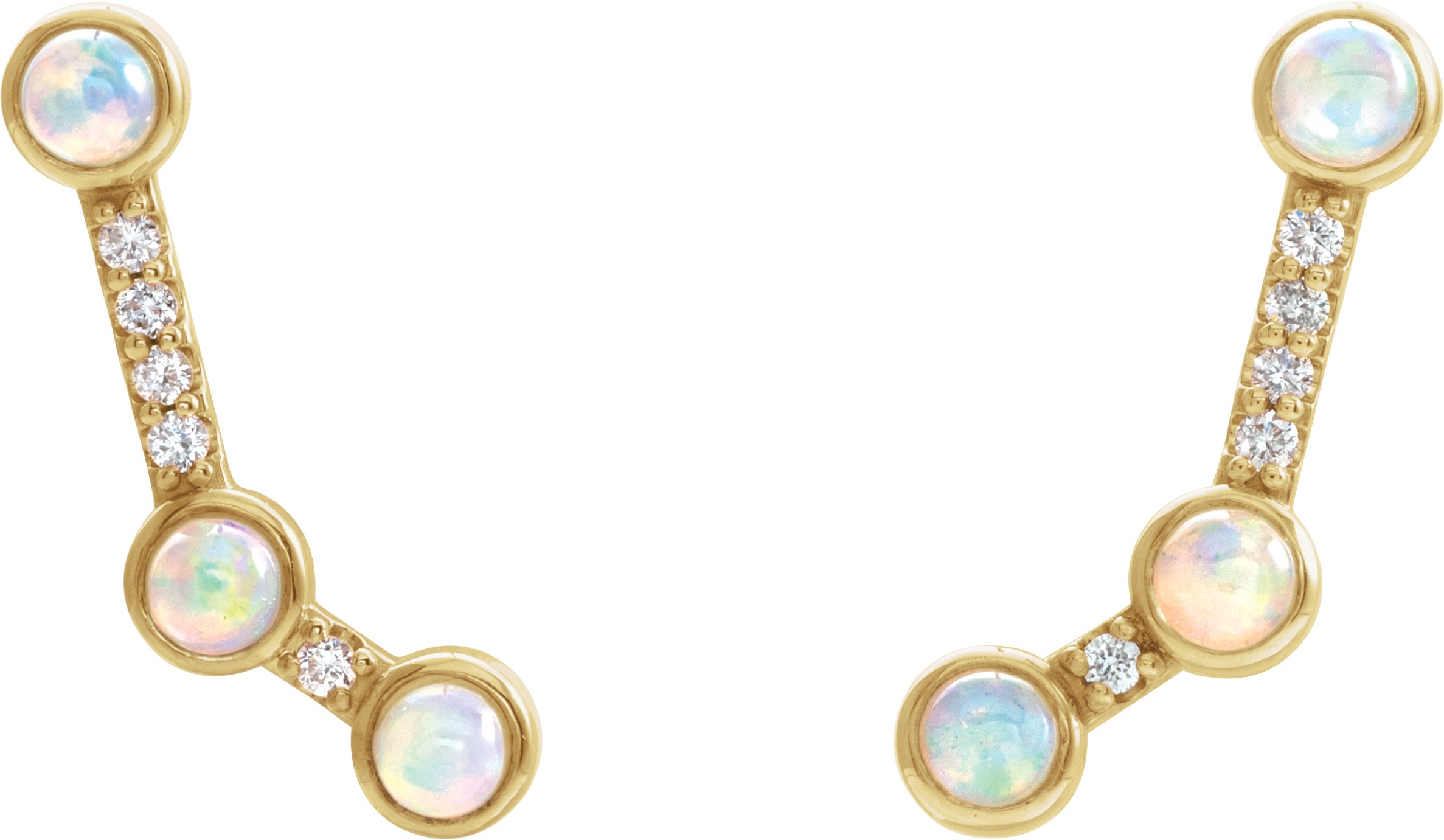 Description: Genuine Ethiopian Opal & .08 Ctw Diamond Scattered Ear Climbers