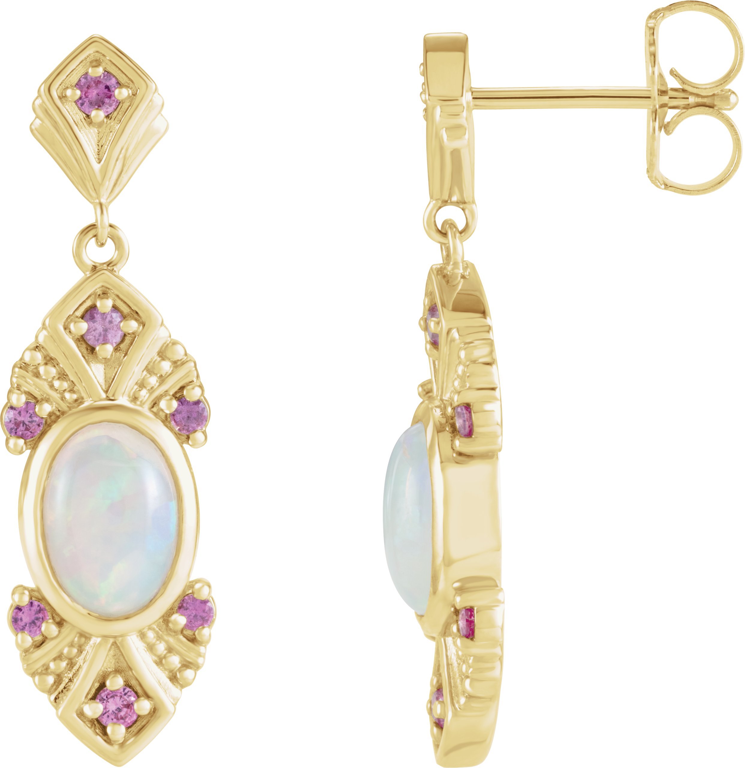 14K Yellow Ethiopian Opal & Pink Sapphire Vintage Inspired Earrings