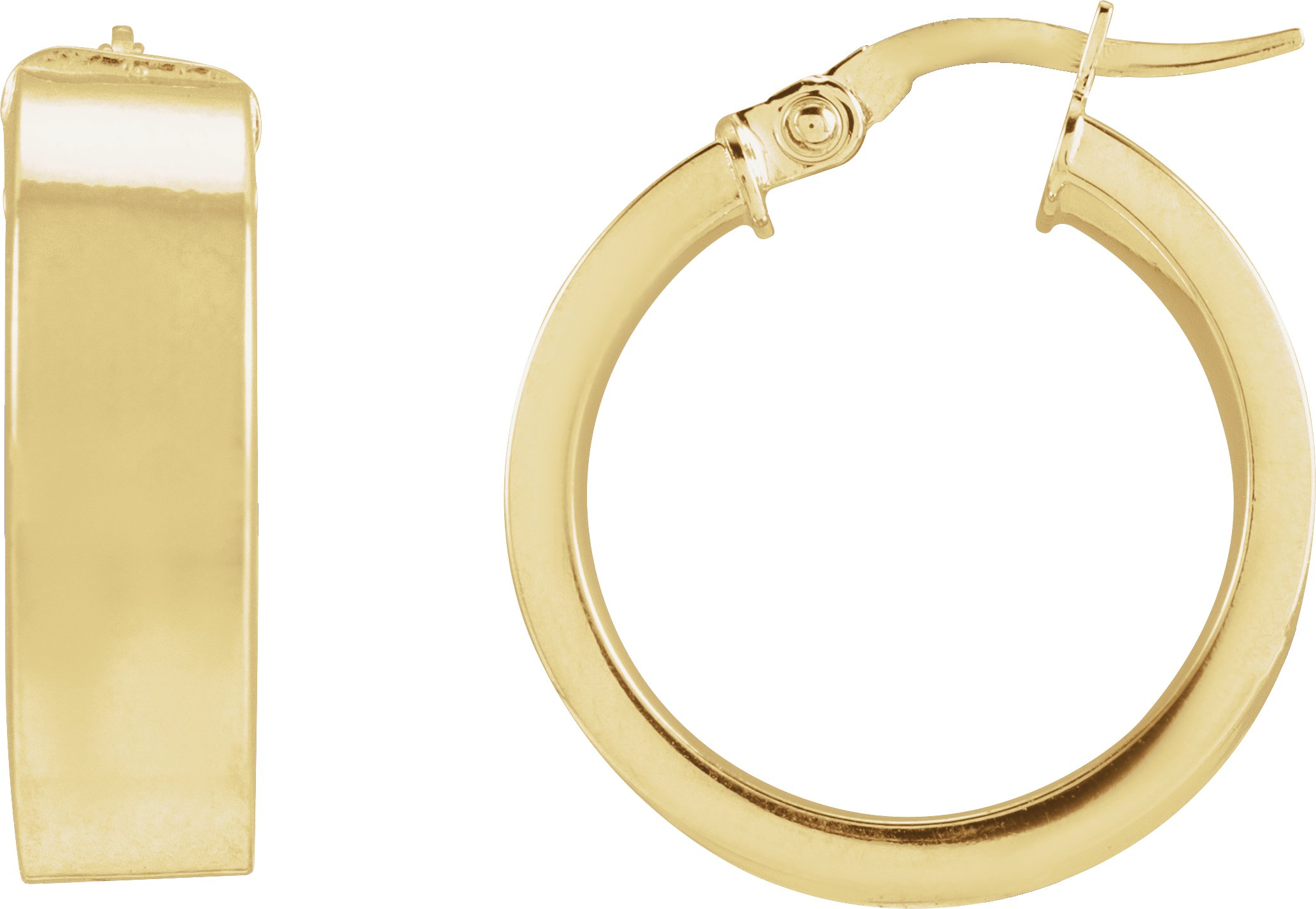 14K Yellow Flat Tube 15 mm Hoop Earrings