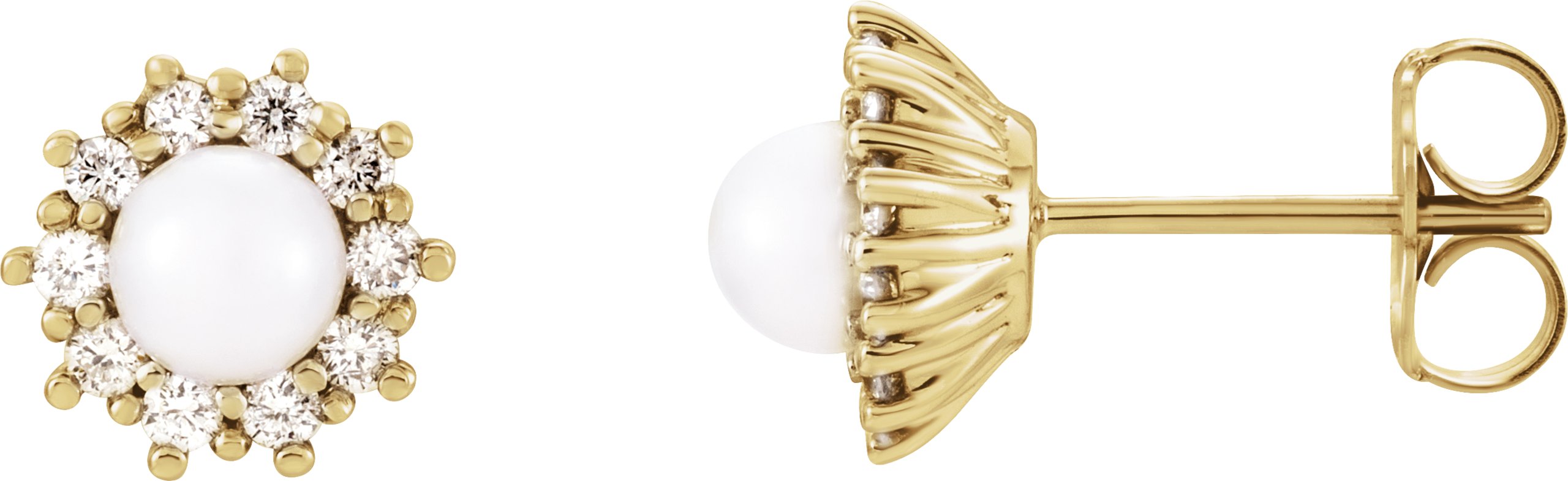14K Yellow Freshwater Cultured Pearl & 1/4 CTW Diamond Earrings