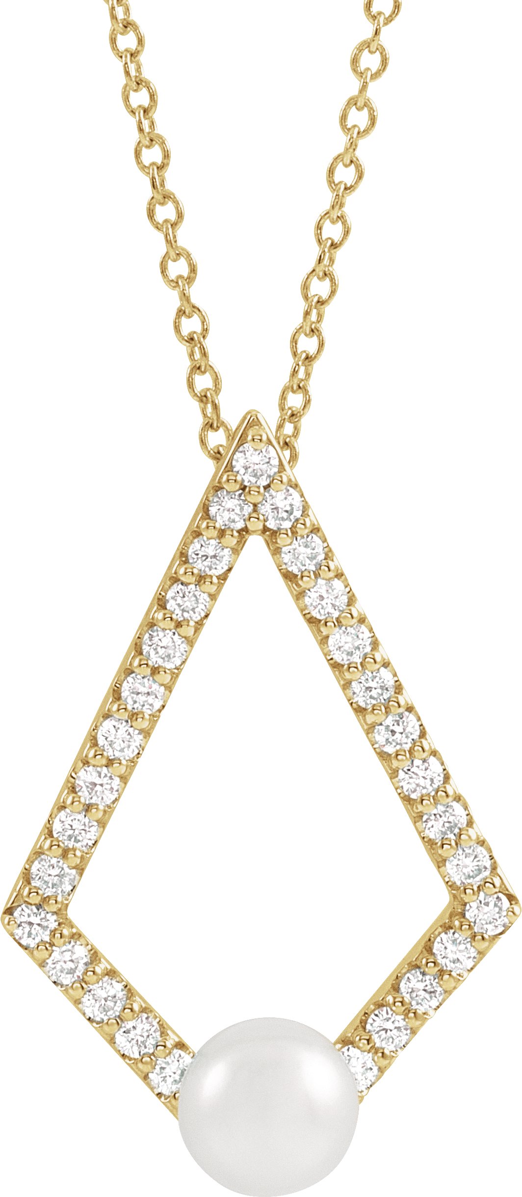 14K Yellow Freshwater Cultured Pearl & 1/4 CTW Diamond Geometric 16 18 inch Necklace