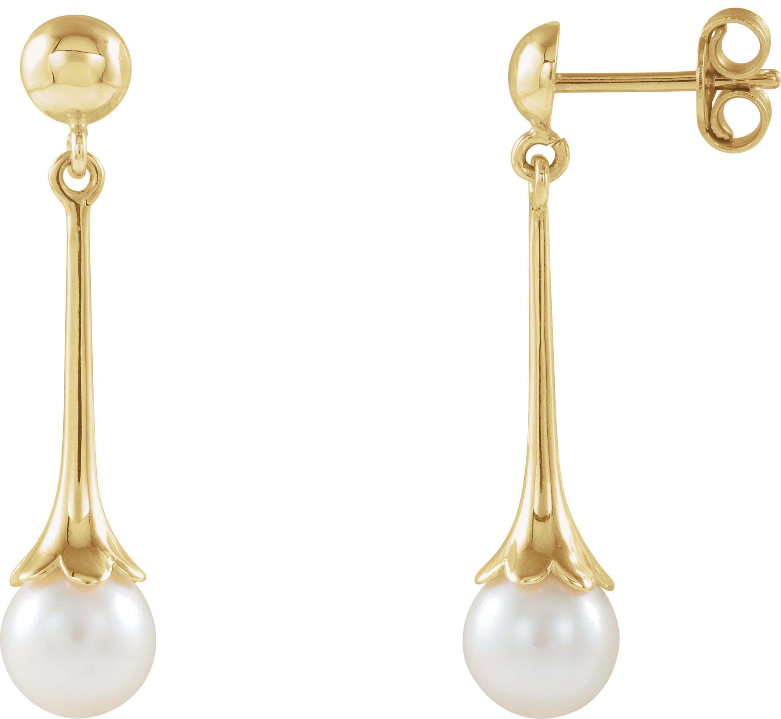 14K Yellow Freshwater Pearl Dangle Earrings with Backs