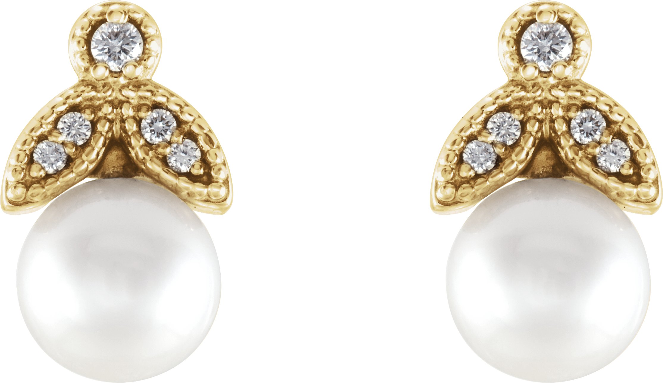 14K Yellow Freshwater Pearl & .06 CTW Diamond Earrings