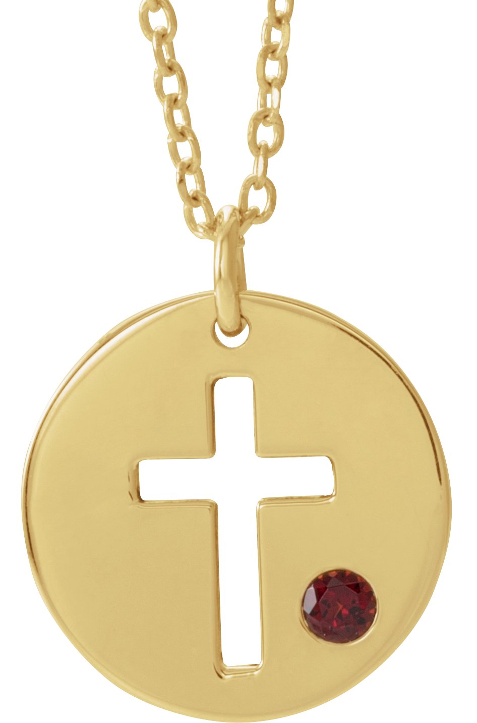 14K Yellow Garnet Pierced Cross Disc 16 18" Necklace Ref. 13377618