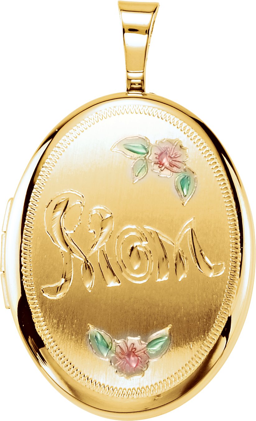 14K Yellow Gold Plated Sterling Silver 24.5x15 mmOval Mom Locket with Enameled Flowers Ref. 3900958