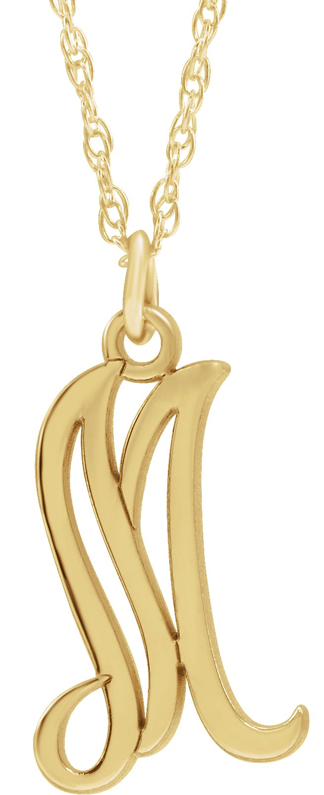 14K Yellow Gold Plated Sterling Silver Script Initial M 16 18" Necklace Ref. 16047162