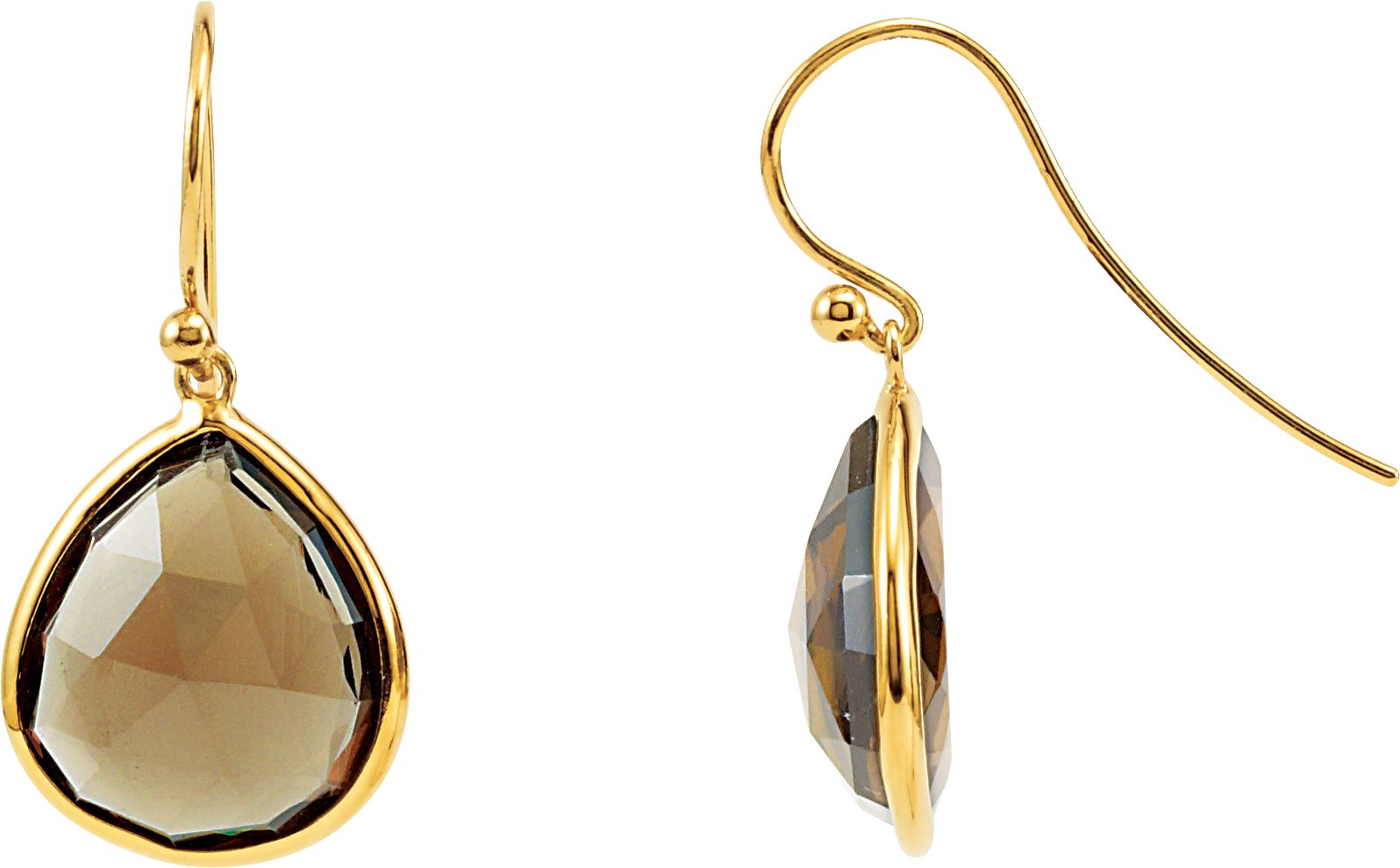 14K Yellow Gold Plated Sterling Silver Smoky Quartz Bezel Set Earrings
