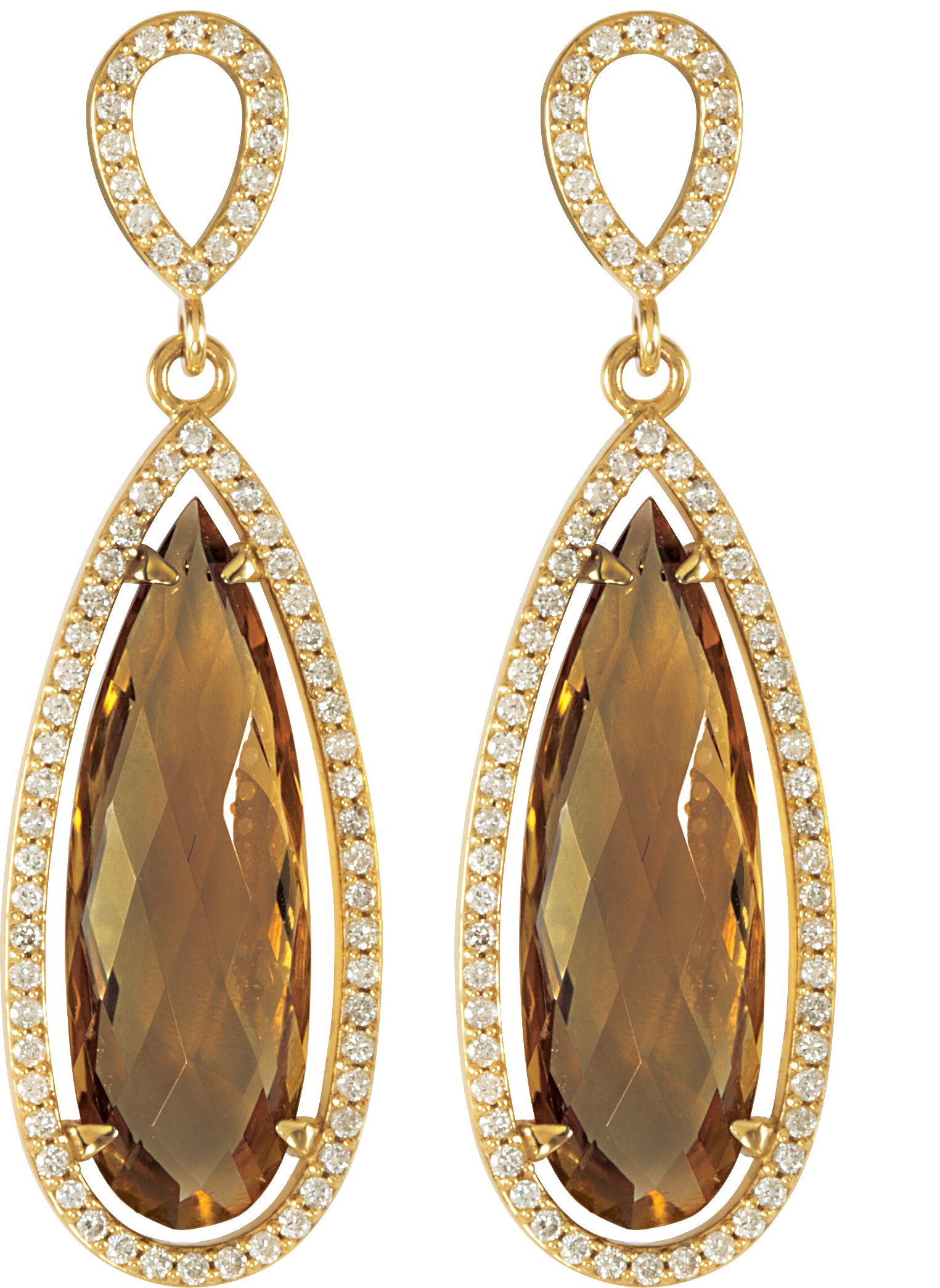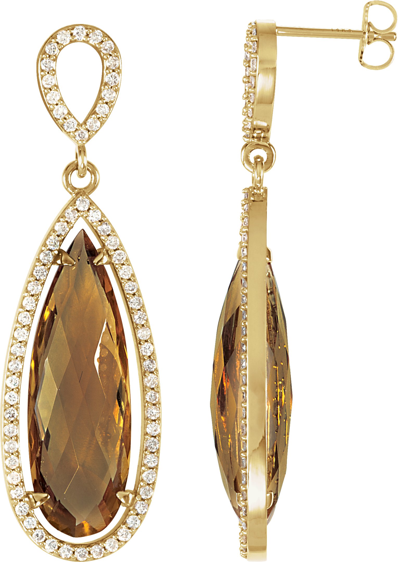 Description: Honey Quartz & 5/8 Ctw Diamond Earrings