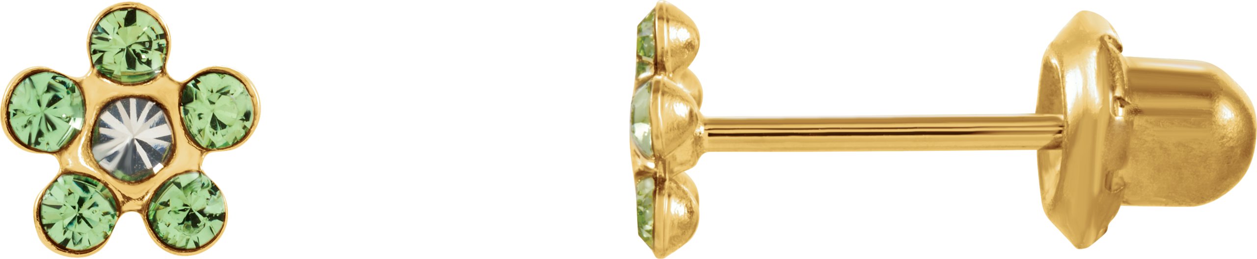14K Yellow Imitation Crystal August Birthstone Piercing Earrings