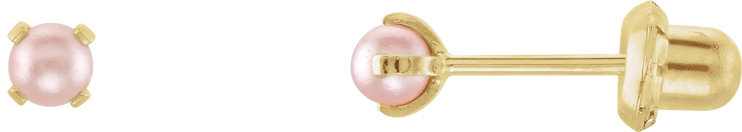 14K Yellow Imitation Pink Pearl Piercing Earrings