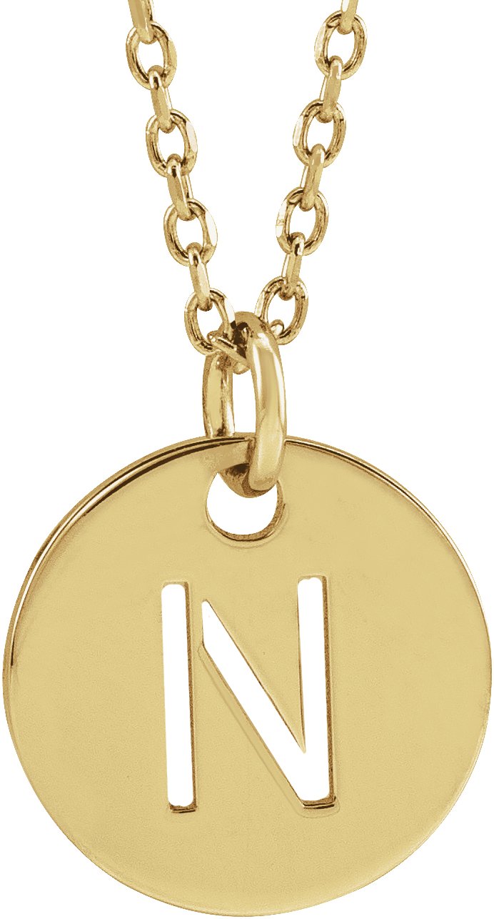14K Yellow Initial N 10 mm Disc 16 18" Necklace Ref. 16680408