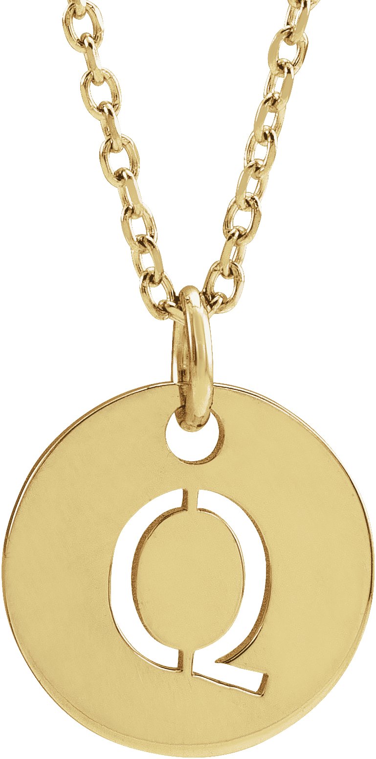 14K Yellow Initial Q 10 mm Disc 16 18" Necklace Ref. 16680420