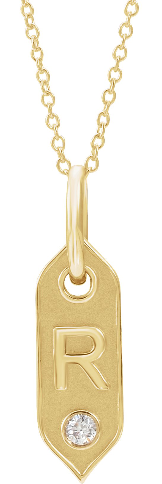 14K Yellow Initial R .05 CT Diamond 16-18" Necklace