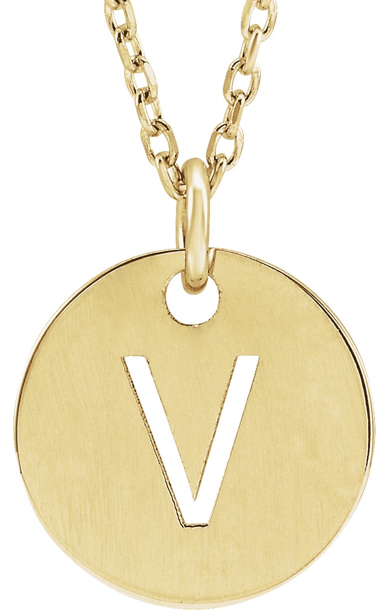 14K Yellow Initial V 10 mm Disc 16 18" Necklace Ref. 16680440