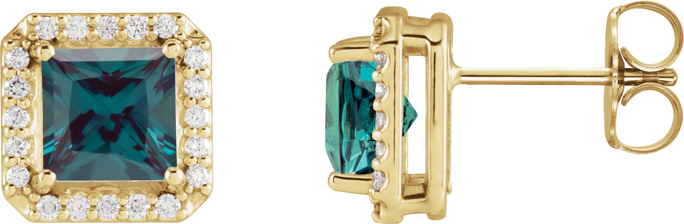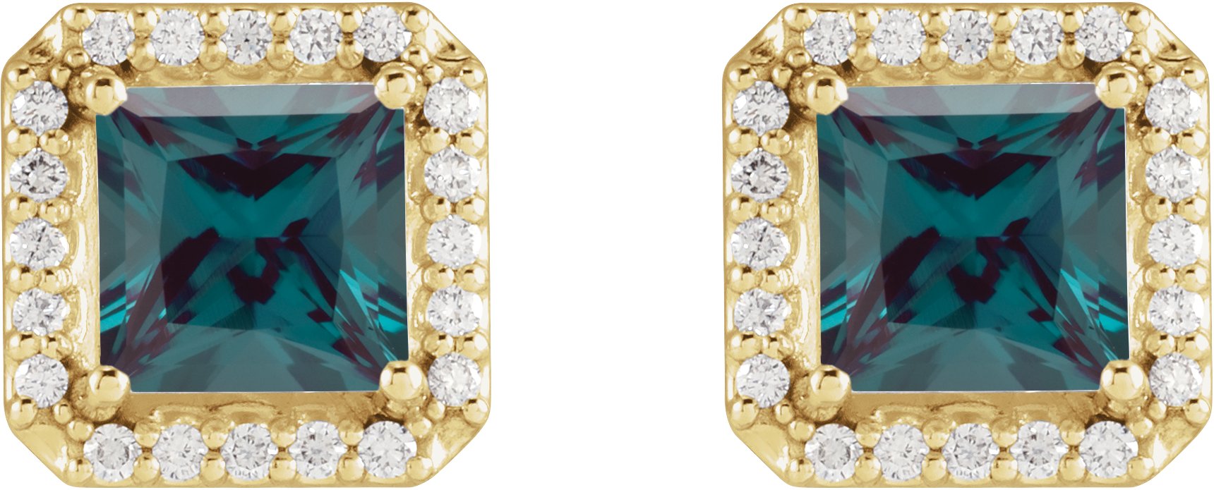 14K Yellow Lab Grown Alexandrite and .08 CTW Natural Diamond Halo Style Earrings Ref 19609019