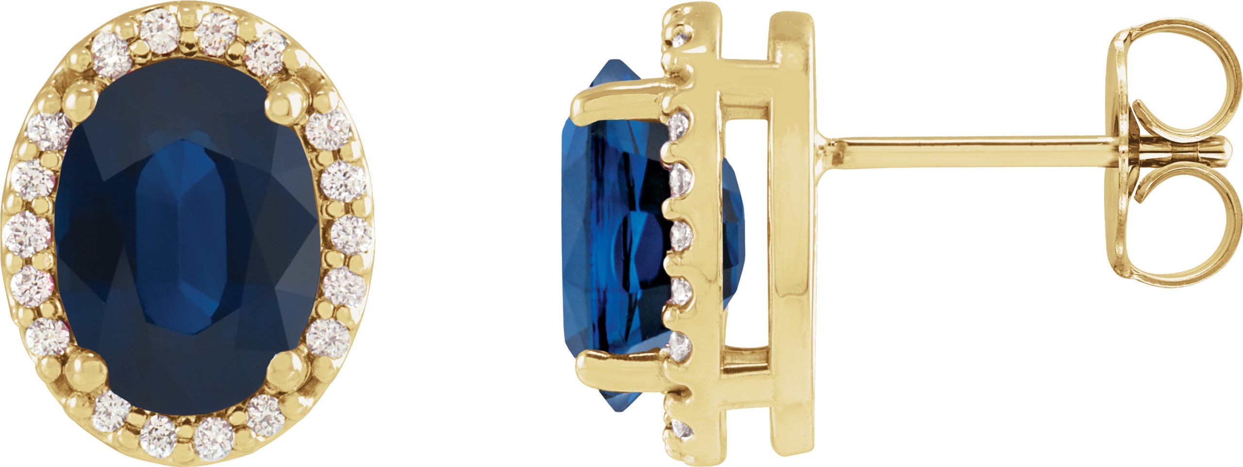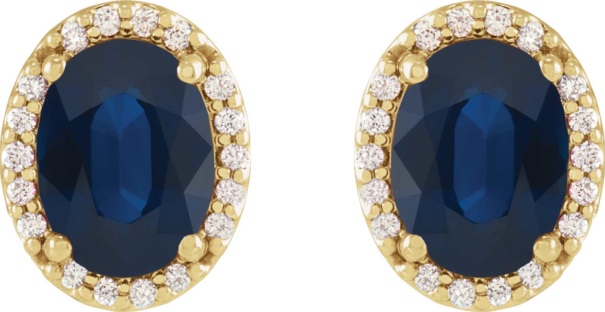 14K Yellow Lab Grown Blue Sapphire and .06 CTW Natural Diamond Halo Style Earrings Ref 19705939
