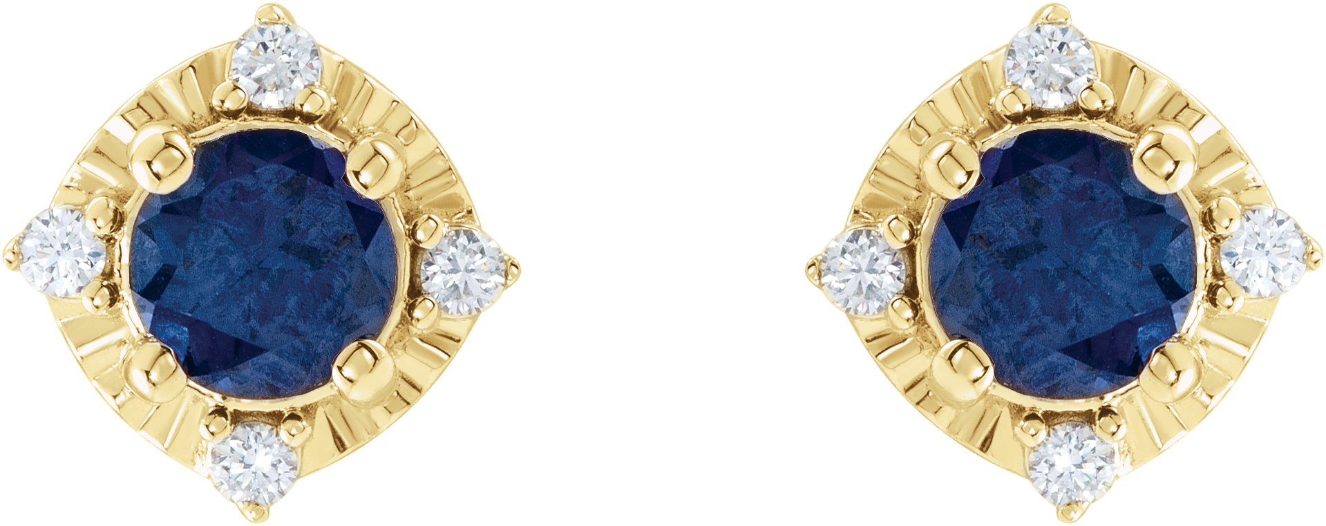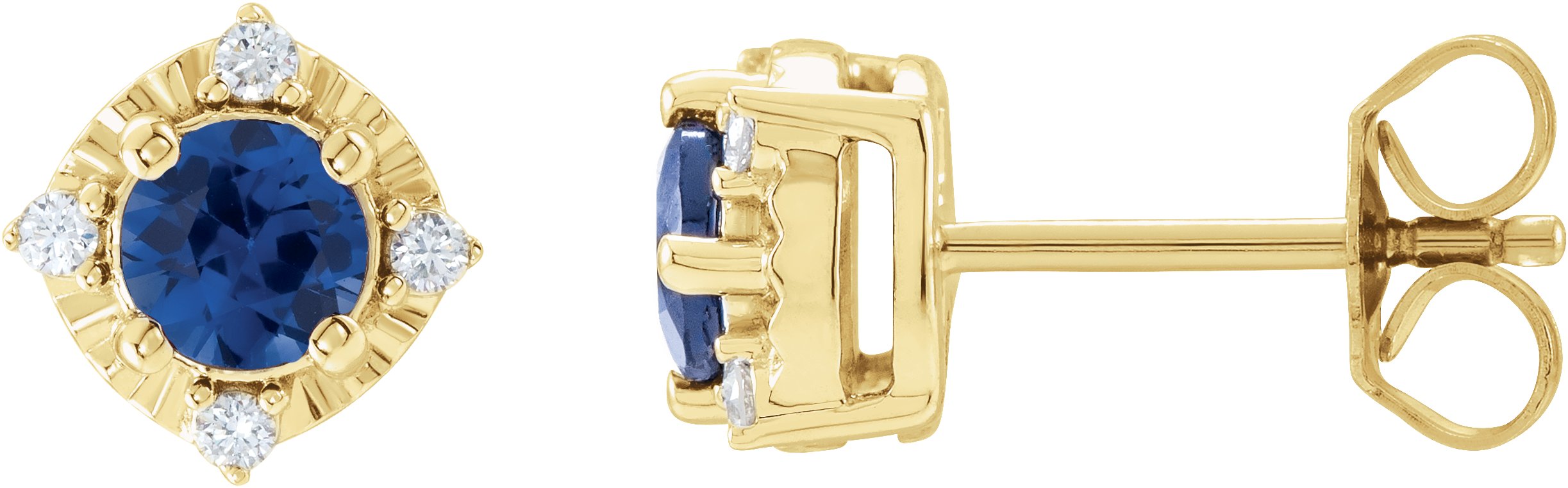 14K Yellow Lab Grown Blue Sapphire and .08 CTW Natural Diamond Halo Style Earrings Ref 17914956