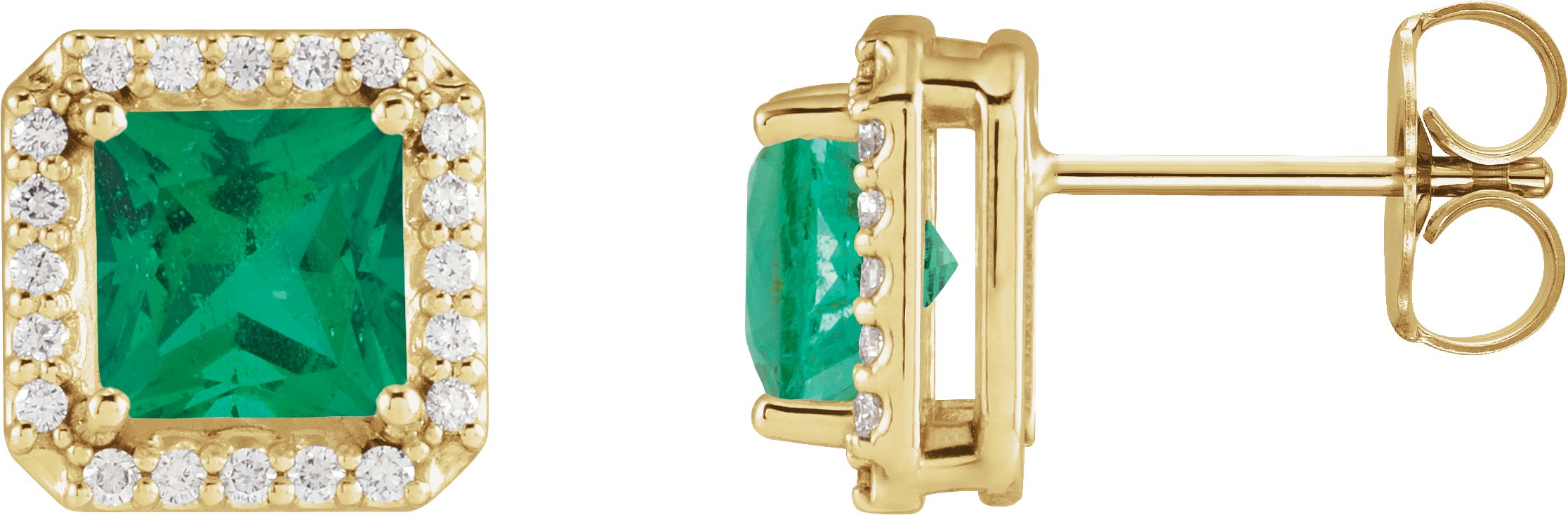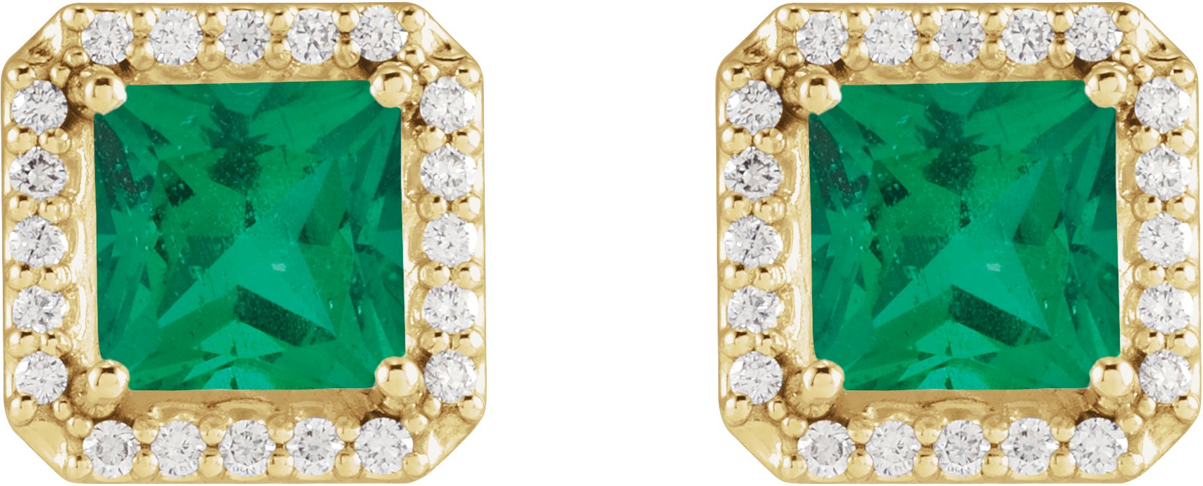 14K Yellow Lab Grown Emerald and .08 CTW Natural Diamond Halo Style Earrings Ref 19609062