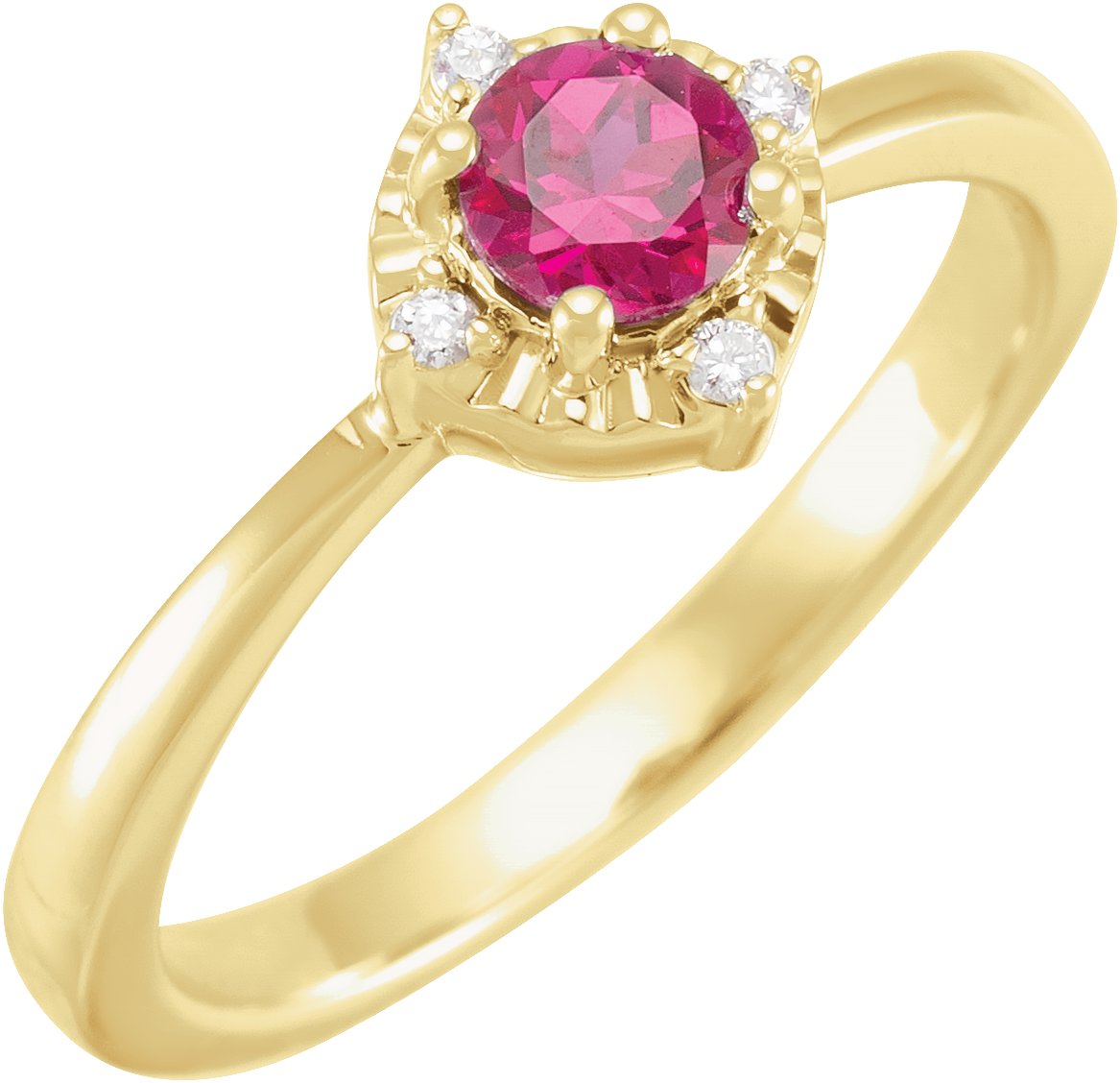 Description: Lab-Grown Ruby And .04 CTW Natural Diamond Ring