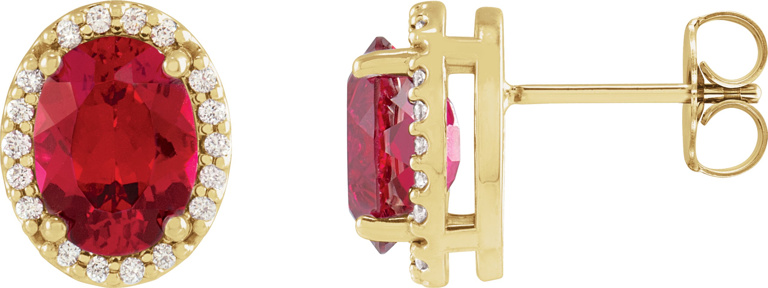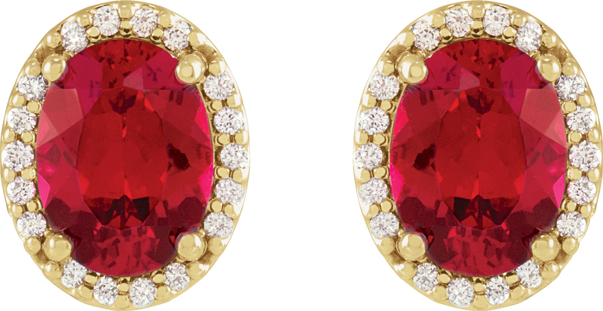 14K Yellow Lab Grown Ruby and .06 CTW Natural Diamond Halo Style Earrings Ref 19705957