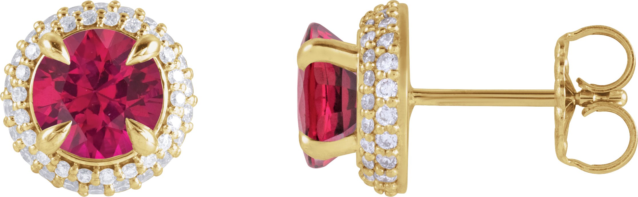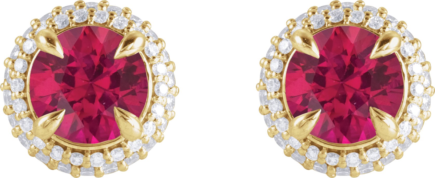 Description: Lab-Grown Ruby And 1/2 CTW Lab-Grown Diamond 4-Claw Prong Pre-Notched Double Halo-Style Earrings
