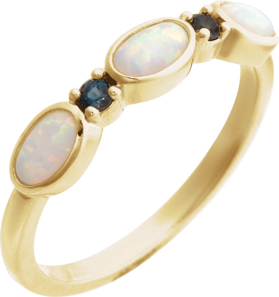 14K Yellow Lab-Grown White Opal & Natural London Blue Topaz Stackable Ring