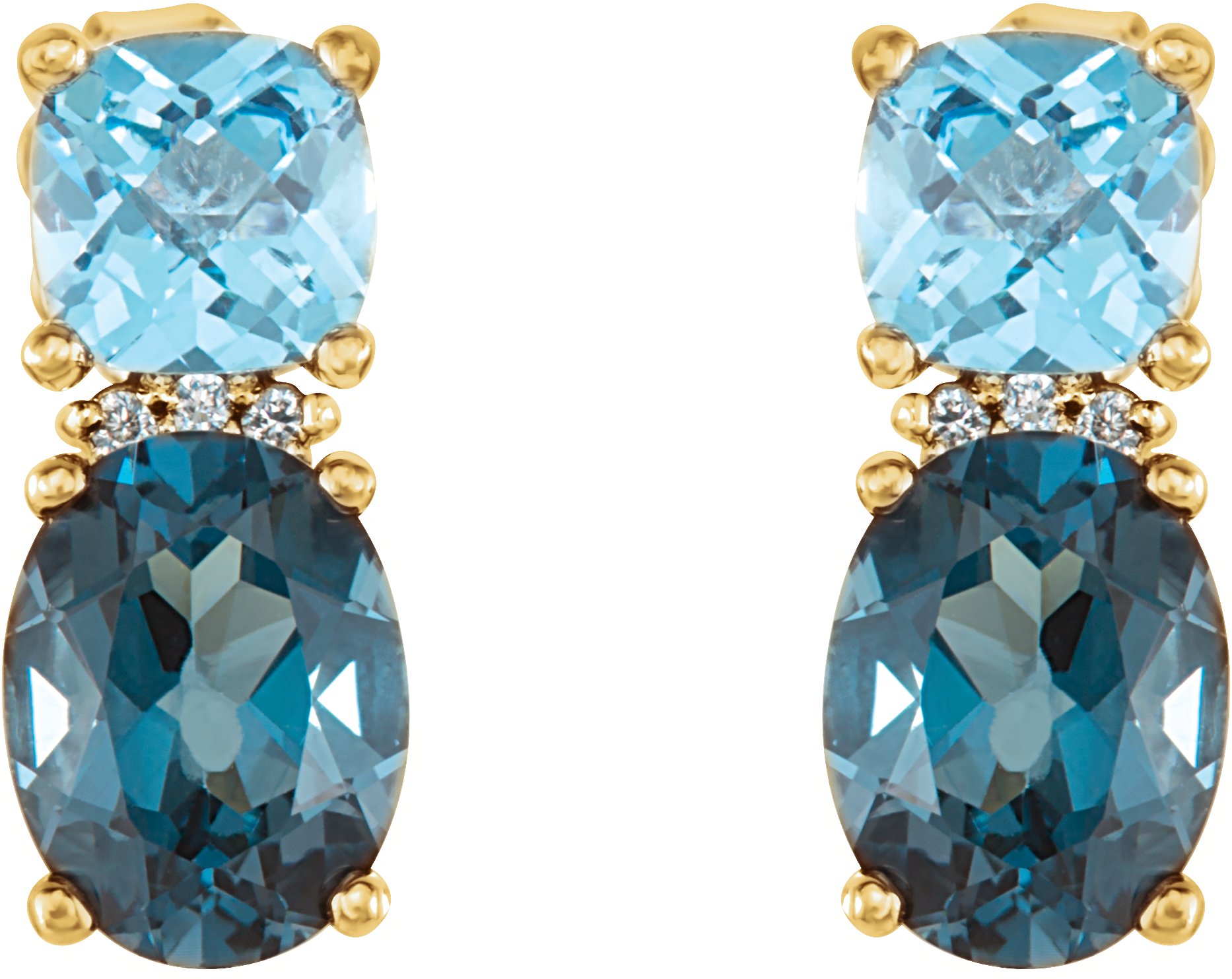 14K Yellow London Blue Topaz, Swiss Blue Topaz & .01 CTW Diamond Earrings