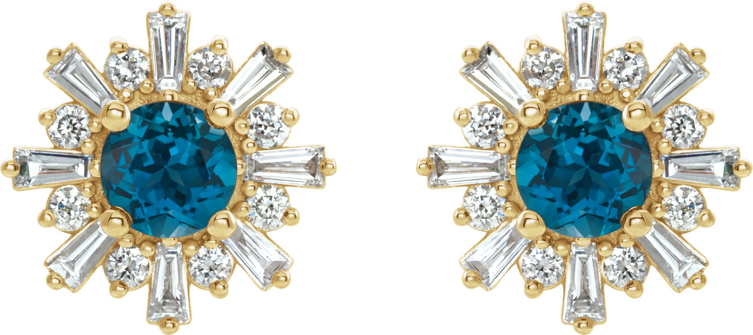 14K Yellow London Blue Topaz & 3/4 CTW Diamond Earrings