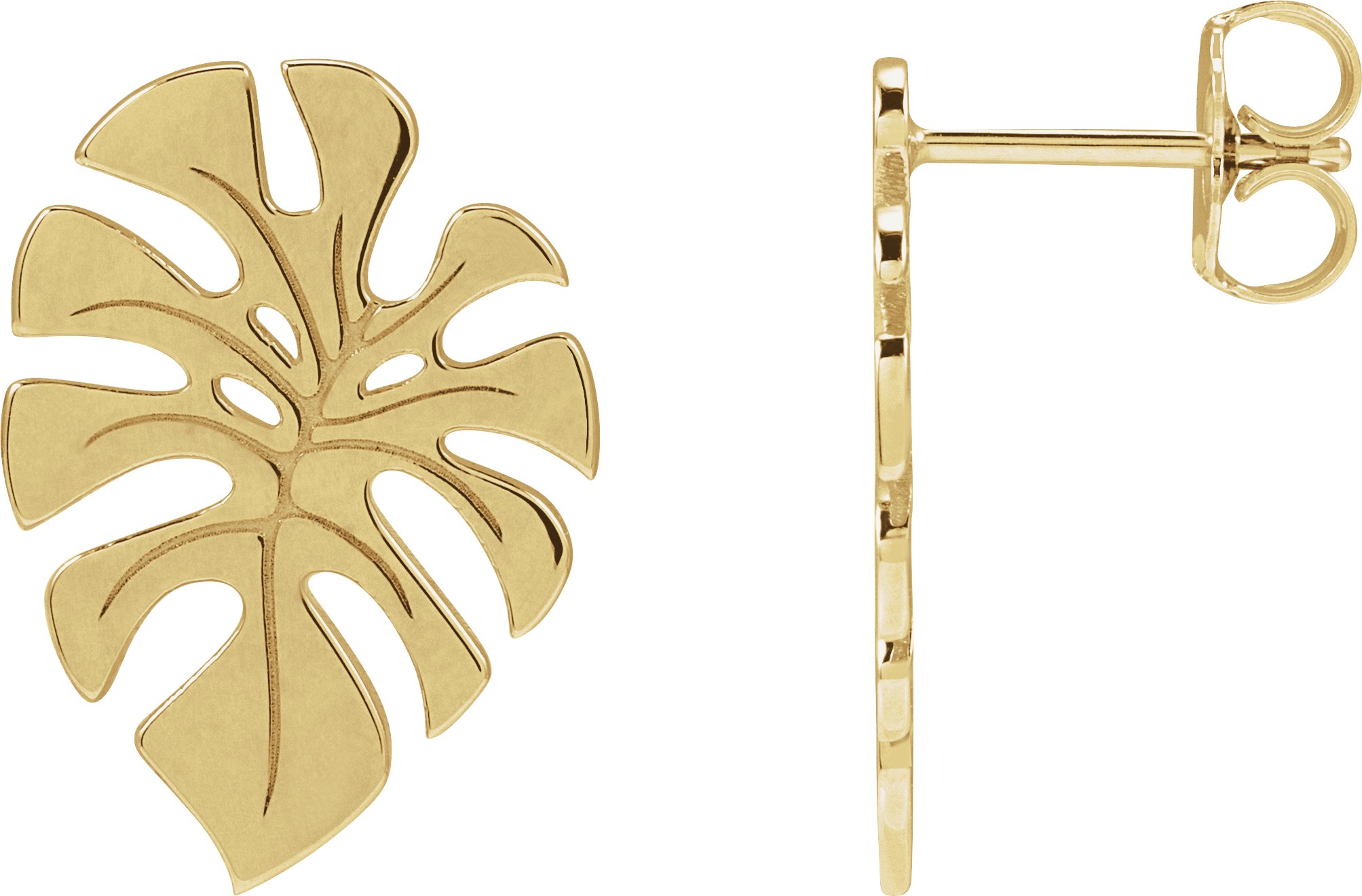 14K Yellow Monstera Leaf Stud Earrings