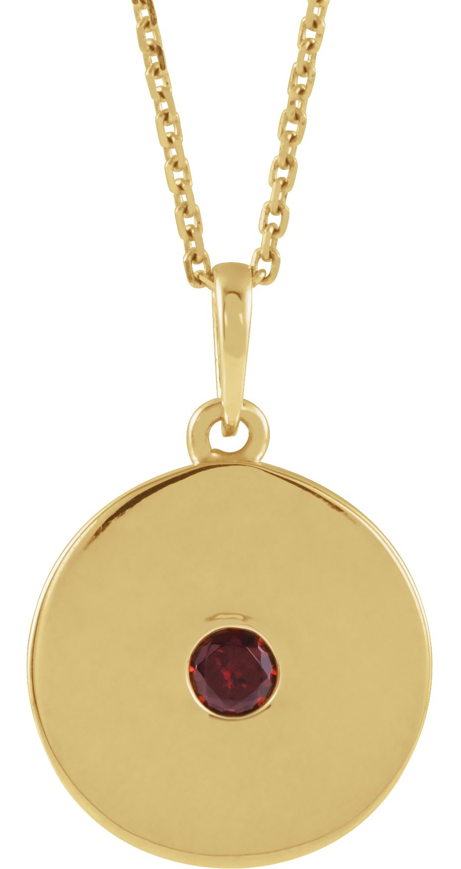 Description: Genuine Mozambique Garnet Disc Pendant Necklace