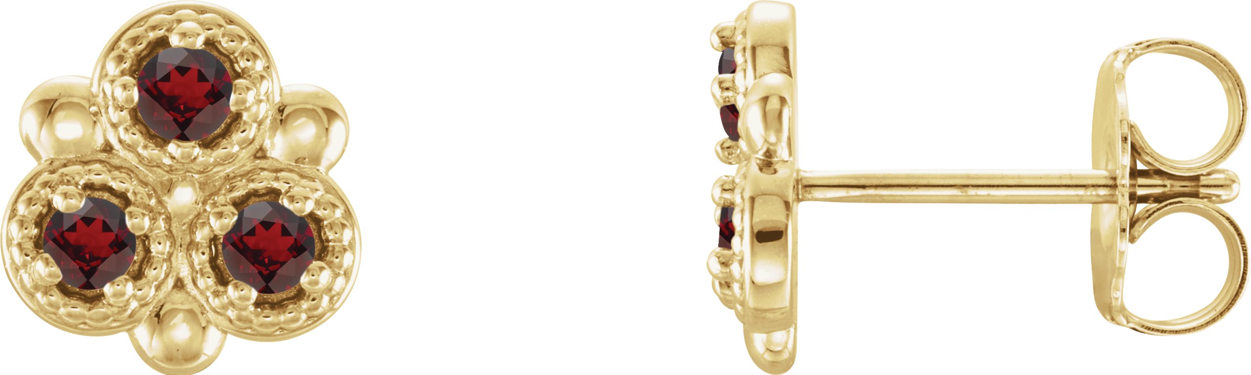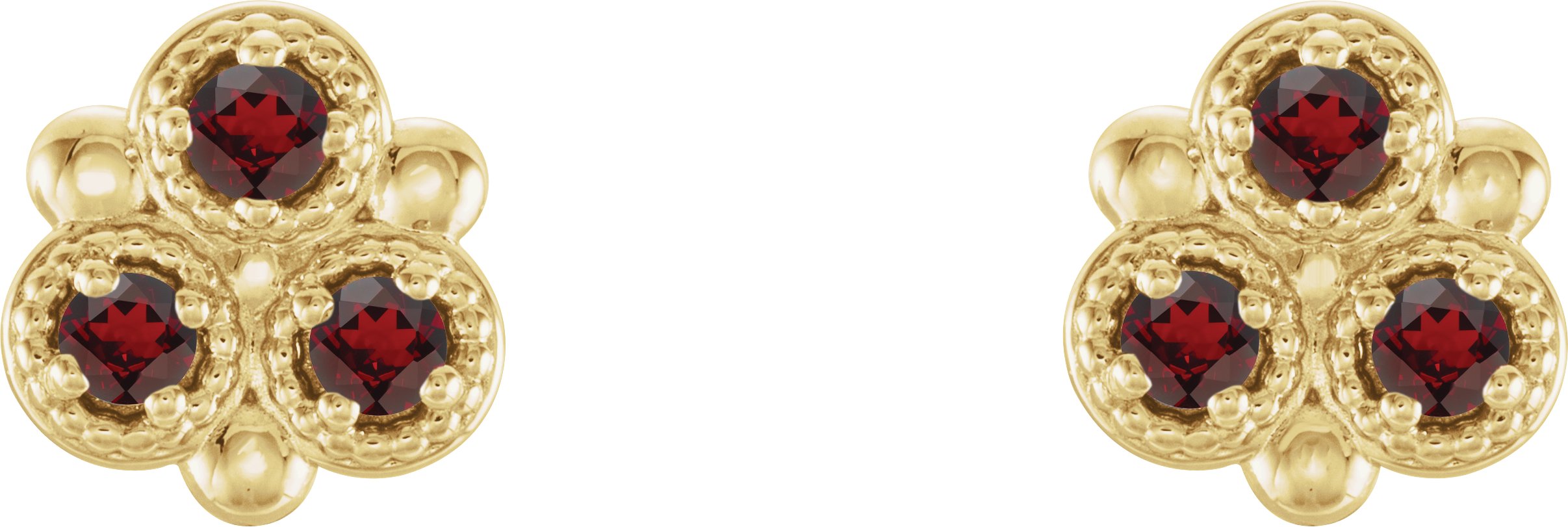 14K Yellow Mozambique Garnet Three Stone Earrings