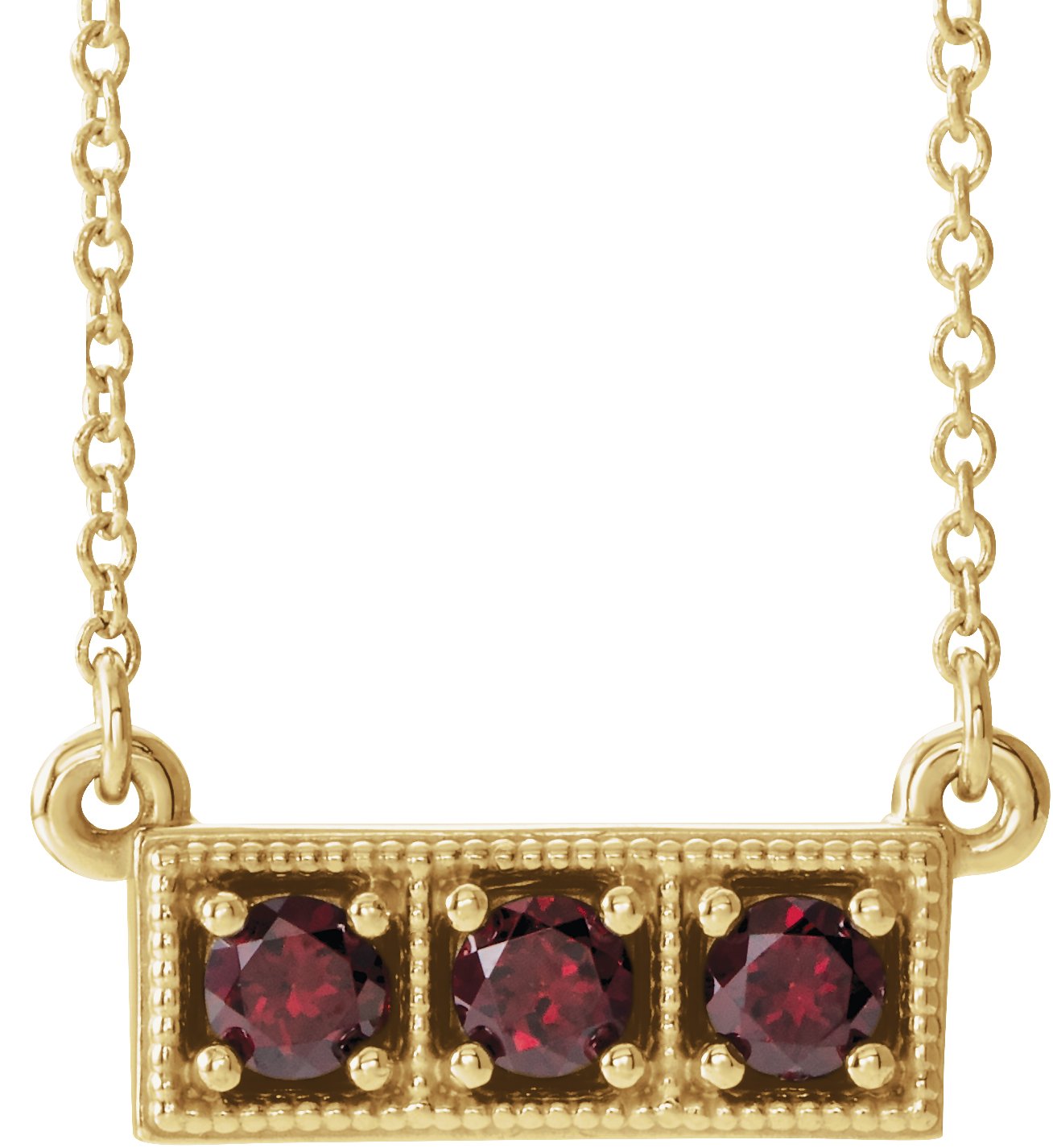 14K Yellow Mozambique Garnet Three Stone Granulated Bar 16 18" Necklace Ref. 14204211